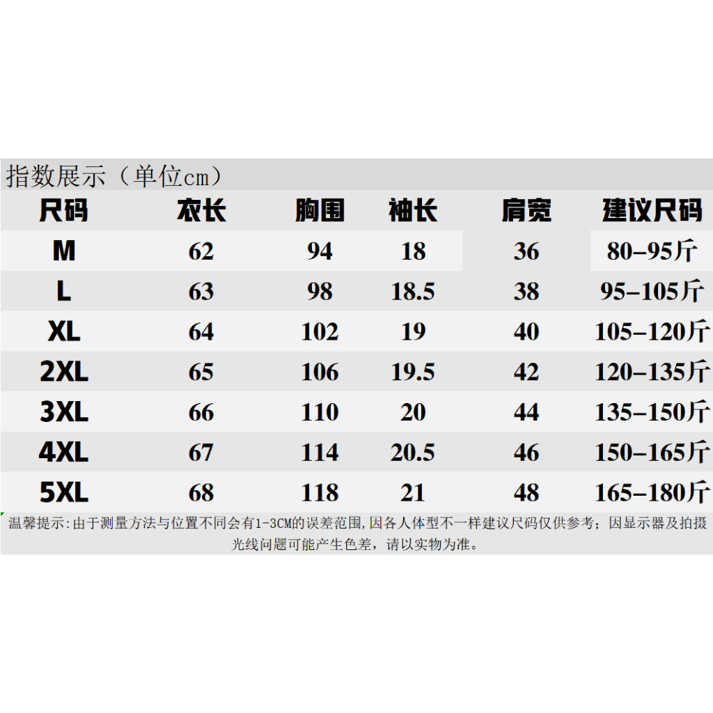 2xl: หน้าอก: 106 ความยาว: 65 ไหล่: 42 แขนเสื้อ: 19.5