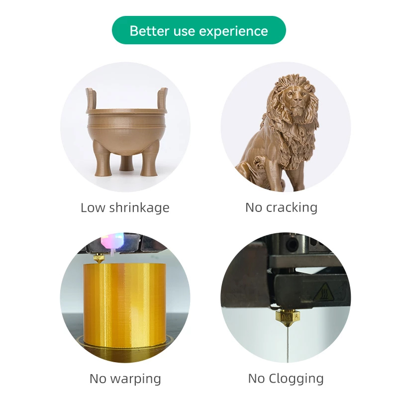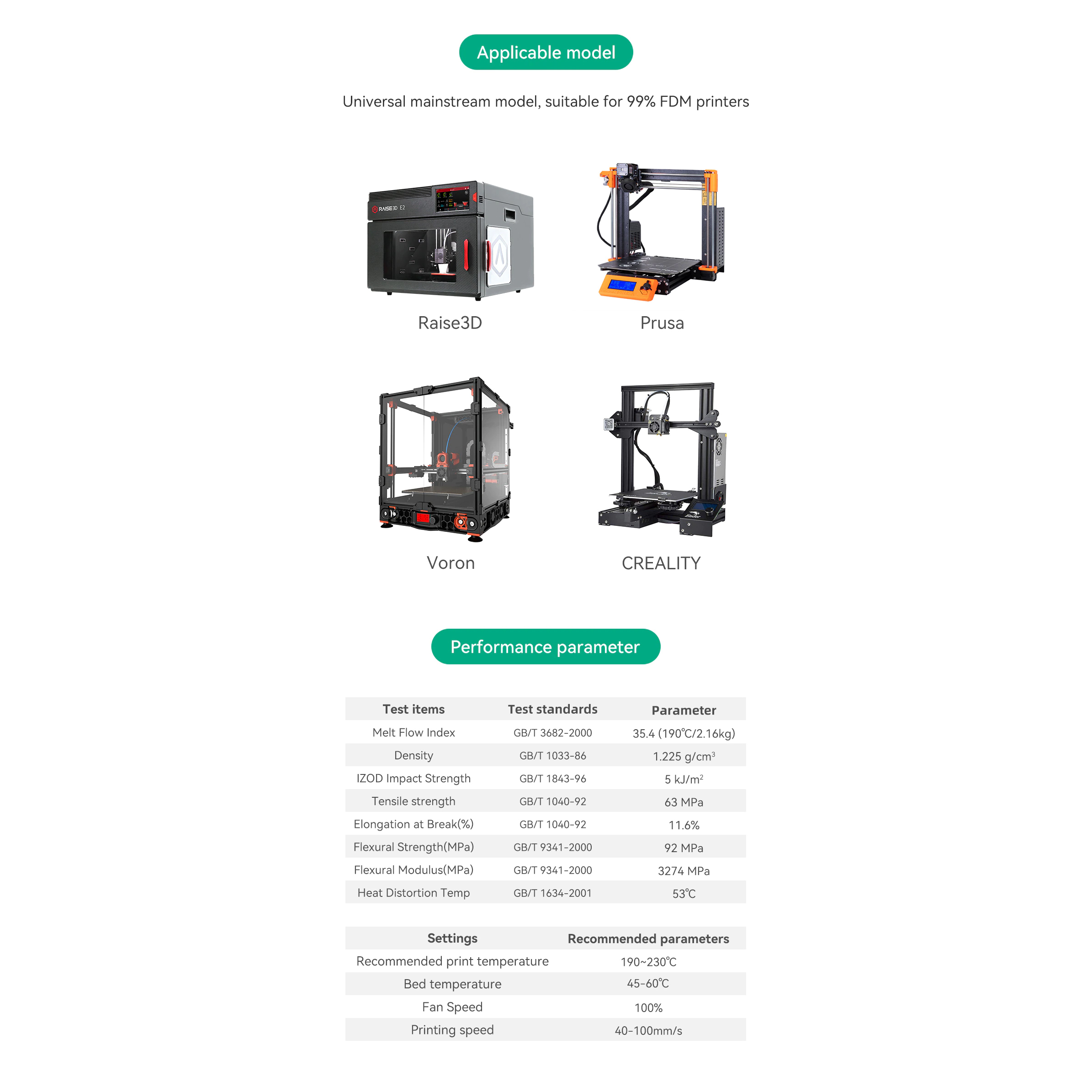 【Stable Dimensional Tolerance】Minimum tolerance and low warping to ensure consistent feeding and stable prints, good layer bonding, less stringing, no bubbles, no cracking, no deformation, easy handling, resulting in an outstanding surface finish and are highly precise.