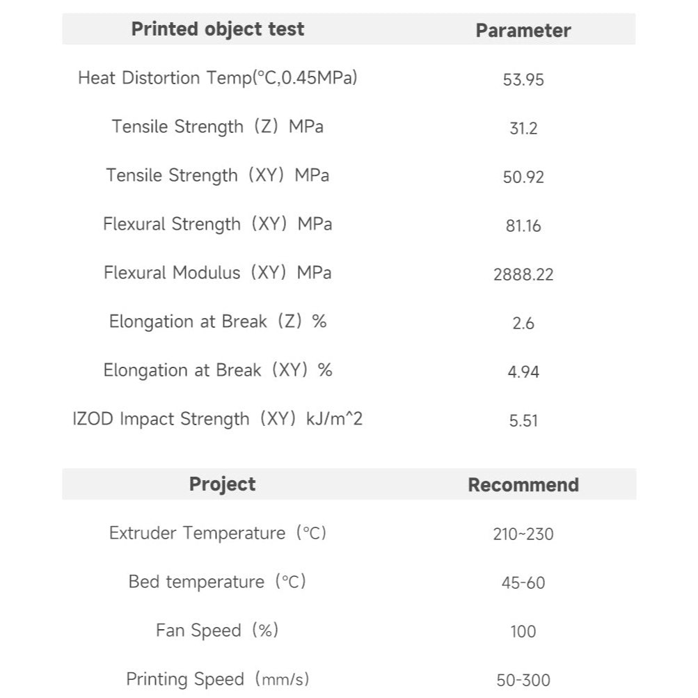 Fast printing requires materials that can melt and cool quickly. However, to balance the speed of material melting and cooling, the physical properties of materials printed using fast techniques usually experience some decline. In order to provide 3D printed products with superior mechanical performance under fast printing conditions, we have conducted numerous tests on various rapid formulations. As a result, we have selectively chosen ePLA+HS, also known as ePLA+HS, which is specifically designed to match high-speed printing and offers enhanced toughness.