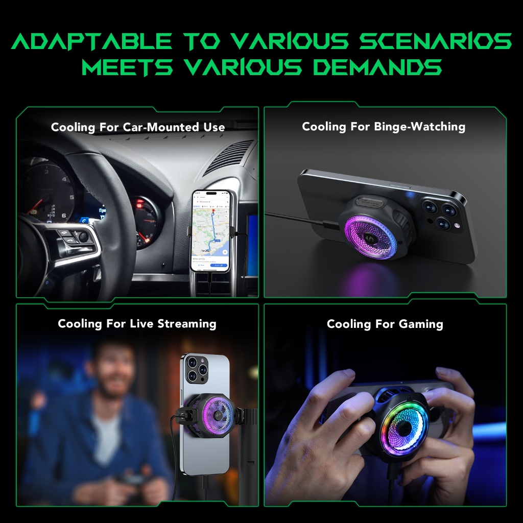 ติดตั้งแบบ Magnetic พร้อมช่องระบายอากาศบนและล่าง ช่วยระบายความร้อนโทรศัพท์ได้ดี บวกกับเสียงลมที่เบาเพียง 39 dB ช่วยให้การเล่นเกมเพลิดเพลิน พร้อมปรับแต่งไฟ RGB ผ่านแอป Shark Arsenal