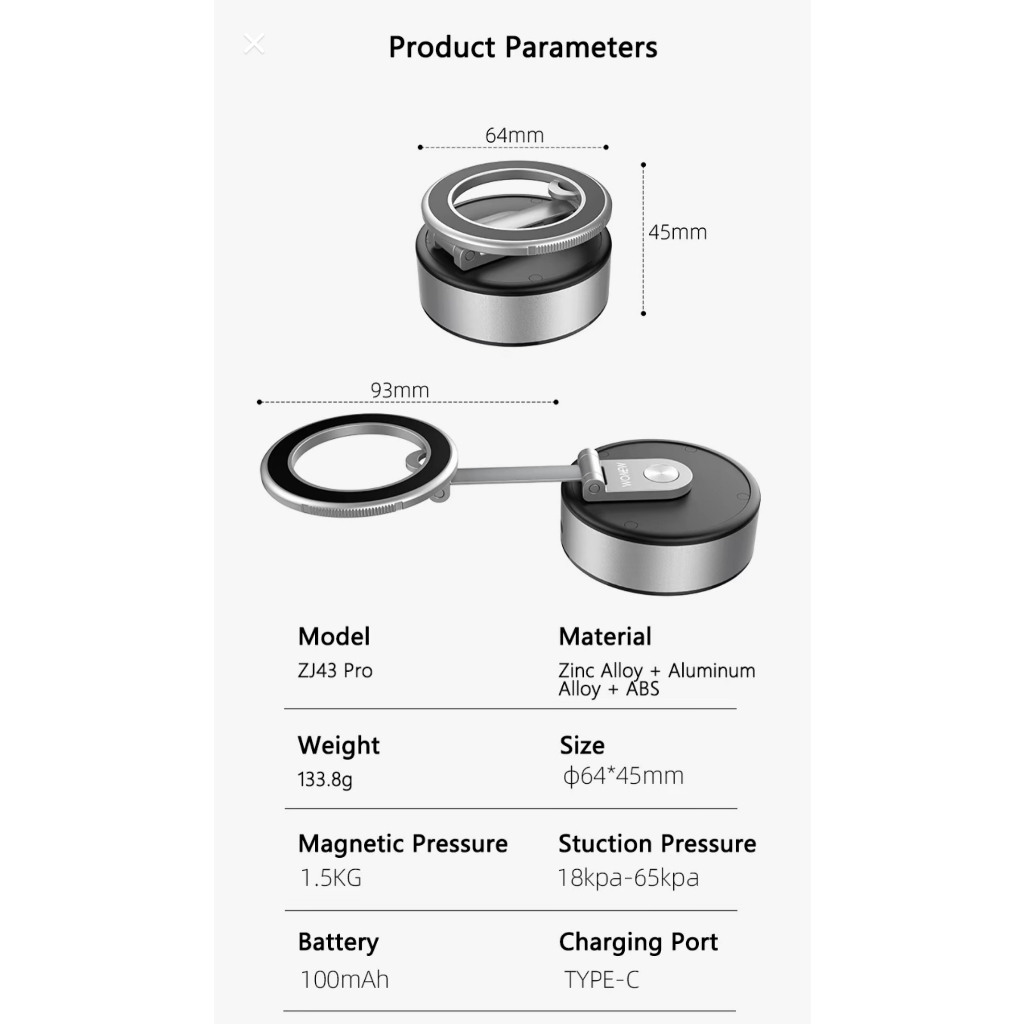 เกี่ยวกับวงเล็บแม่เหล็กสูญญากาศ (ZJ43 pro):