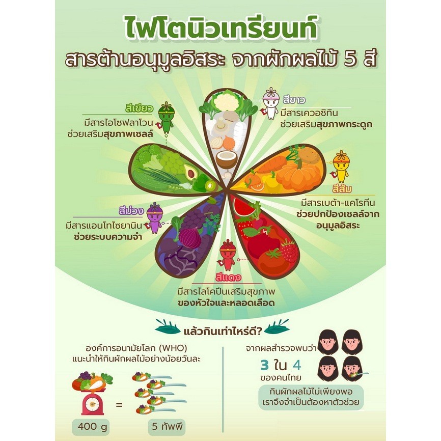 สารสกัดจากผักและผลไม้รวมผง (โรสแมรี่, แอปเปิ้ล, อัลฟัลฟ่า1 มะกอก, บร็อคโคลี่, เมล็ดองุ่น และขมิ้น) 24.5 มก.