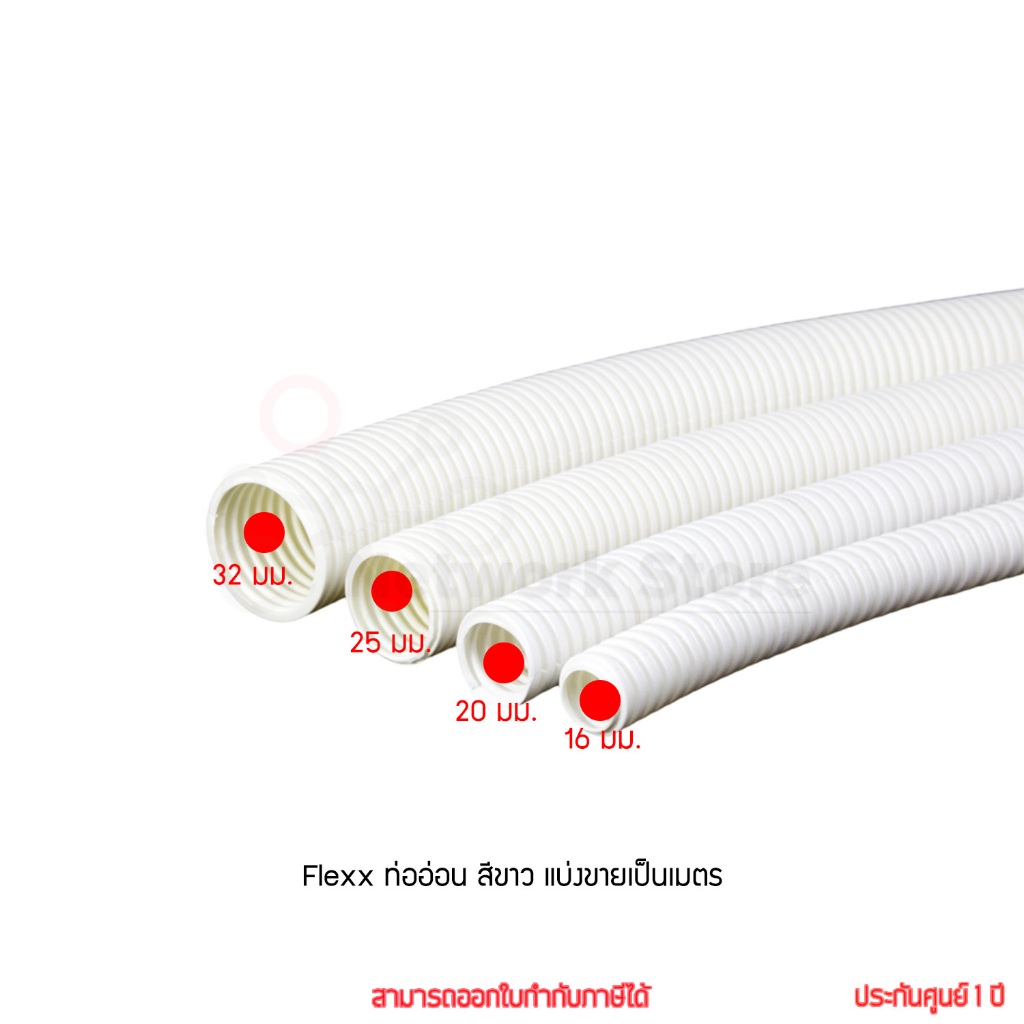 Flexx ท่ออ่อน ท่อลูกฟูก ท่อร้อยสายไฟ สายแลน PVC สีขาว ขนาด 16/20/25/32 มม. คุณภาพดี