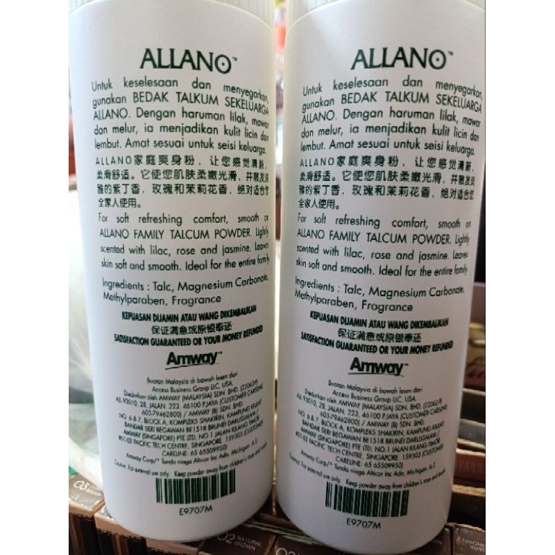แป้งเนื้อเนียนละเอียดและมีความสามารถในการดูดซับความชื้นส่วนเกิน ALLANO Family Talcum Powder สามารถทำให้คุณแห้งและสบายได้เป็นเวลานาน นอกจากนี้ยังมีกลิ่นหอมของดอกกุหลาบดอกมะลิสีม่วงอ่อน