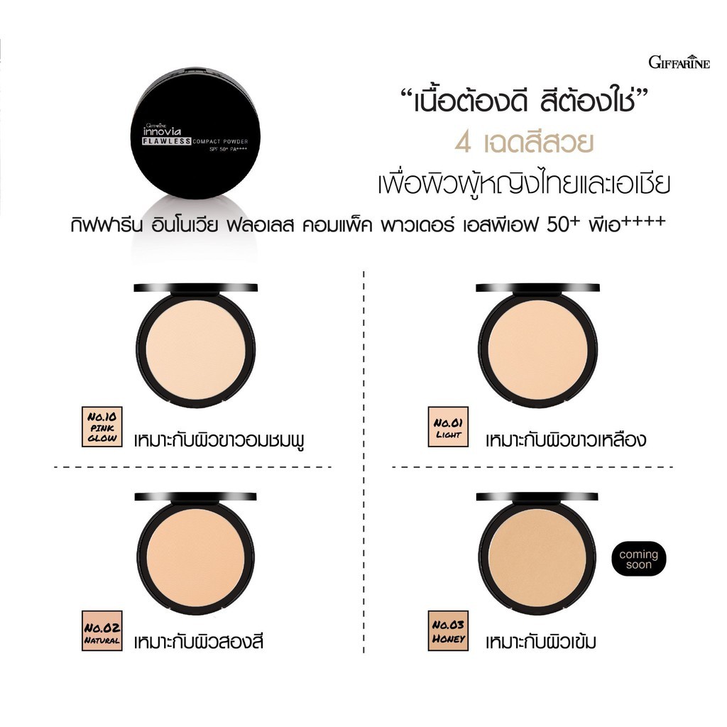แป้งพัฟผสมรองพื้น กิฟฟารีน อินโนเวีย ฟลอเลส คอมแพ็ค พาวเดอร์ เอสพีเอฟ 50+ พีเอ++++