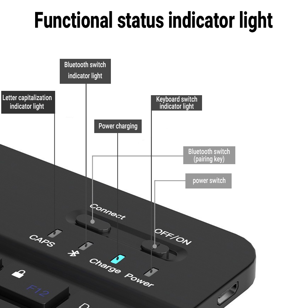 พร้อมแป้นพิมพ์ Bluetooth สามารถใช้กับโทรศัพท์มือถือ / แท็บเล็ต / ทีวีของทุกยี่ห้อทุกยี่ห้อและทุกระบบ