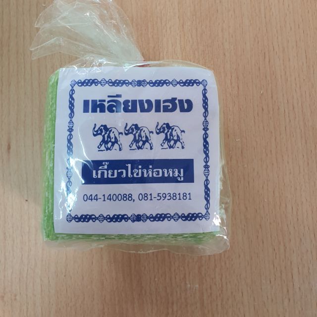 -แผ่นเกี๊ยวบางหยก (สีเขียว) ความพิเศษของเกี๊ยวห่อนี้คือ สีเขียวที่ได้จาก น้ำใบเตยหอม แค่เปิดถุงออกมา กลิ่นใบเตยหอม สดชื่น