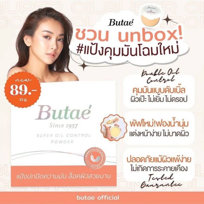 แป้งเทพมหัศจรรย์หมดปัญหาหน้ามันทาแป้งไม่ติดหน้า ด้วย บูเต้ Butae “ซุปเปอร์ ออยล์คอนโทรล พาวเดอร์” แป้งแข็งไม่ผสมรองพื้น แป้งพัฟสูตรควบคุมความมันอย่างได้ผล เนื้อแป้งอ่อนโยน บริสุทธิ์ เนื้อเนียนนุ่ม เพื่อผิวอ่อนใสบอบบาง ผิวหน้าแลดูขาวใสและเนียนสวยอย่างเป็นธรรมชาติเป็นแป้งพัฟที่ช่างใช้แต่งหน้าให้ดาราในกองถ่าย และช่างแต่งหน้าที่สตูดิโอหลายๆที่ก็ใช้ แต่งหน้าถ่ายรูปแต่งงาน รับปริญญา ทำให้หน้าเนียน สวยเด้ง เนื้อแป้งอ่อนโยน ไม่แพ้หรือจะใช้ร่วมกับรองพื้นก็ได้ค่ะ