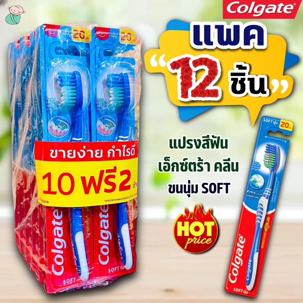 คอลเกต แปรงสีฟัน รุ่นเอ็กซ์ตร้าคลีน ขนแปรงนุ่ม แพ็ค 12 ด้าม