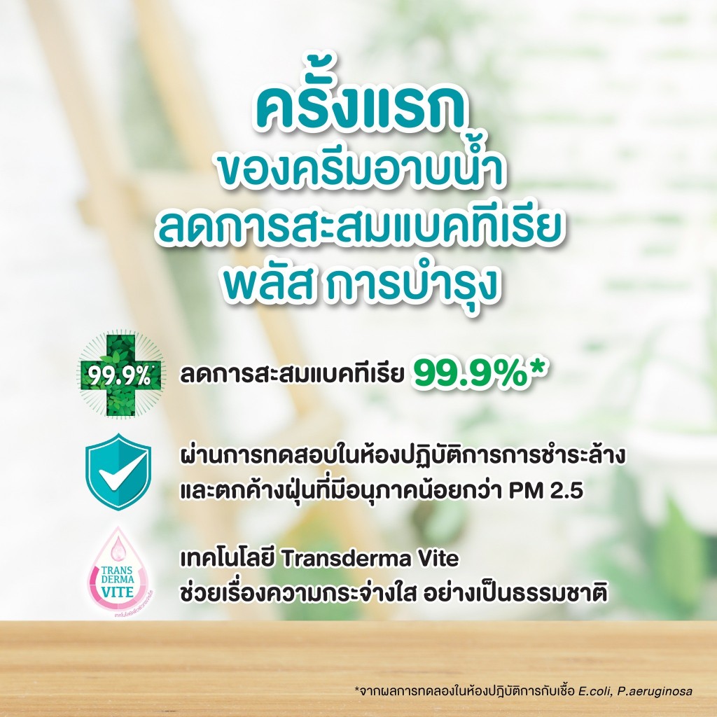 ใหม่!! ครีมอาบน้ำลดการสะสมแบคทีเรีย 99.9%* ด้วยสารสกัดจากพืชธรรมชาติ จากโชกุบุสซึ ปรนบัติผิวให้สะอาดล้ำลึก ชำระล้างผิวจากมลภาวะต่างๆได้อย่างมีประสิทธิภาพ พร้อมด้วยเทคโนโลยี Transderma Vite ช่วยเรื่องความกระจ่างใส ให้ผิวหอมสะอาดยาวนาน มีให้เลือกถึง 2 สูตร