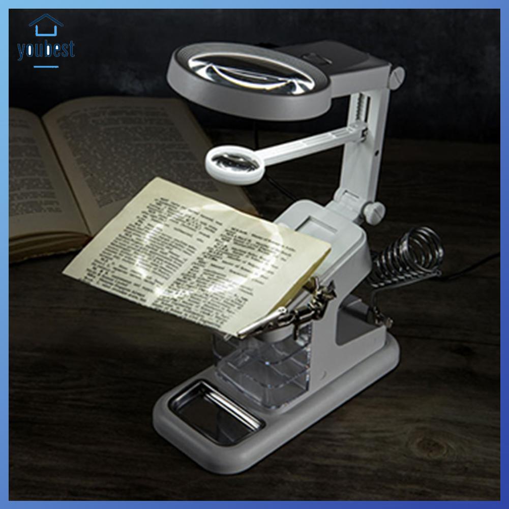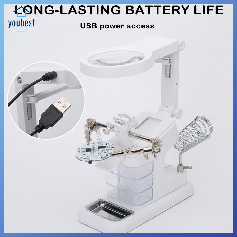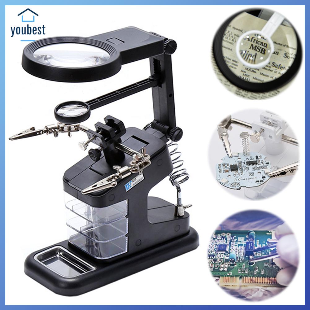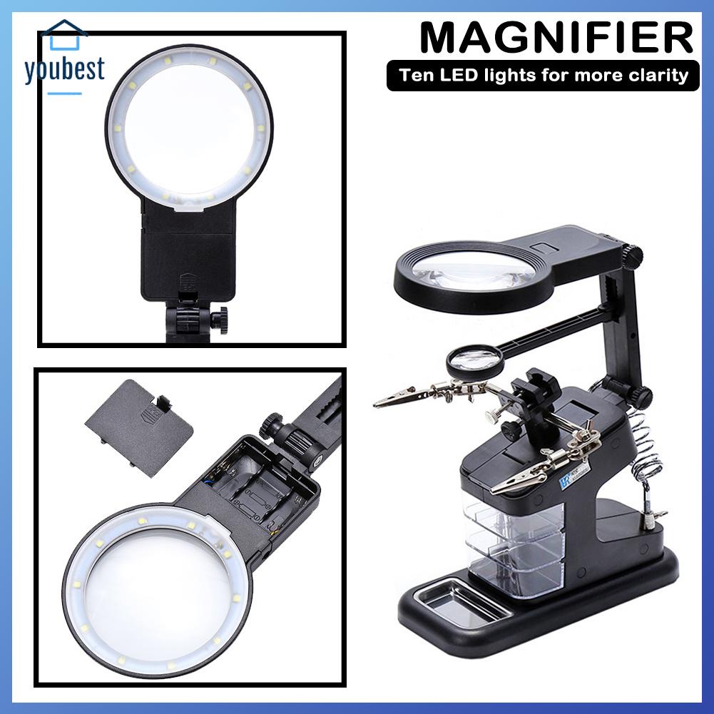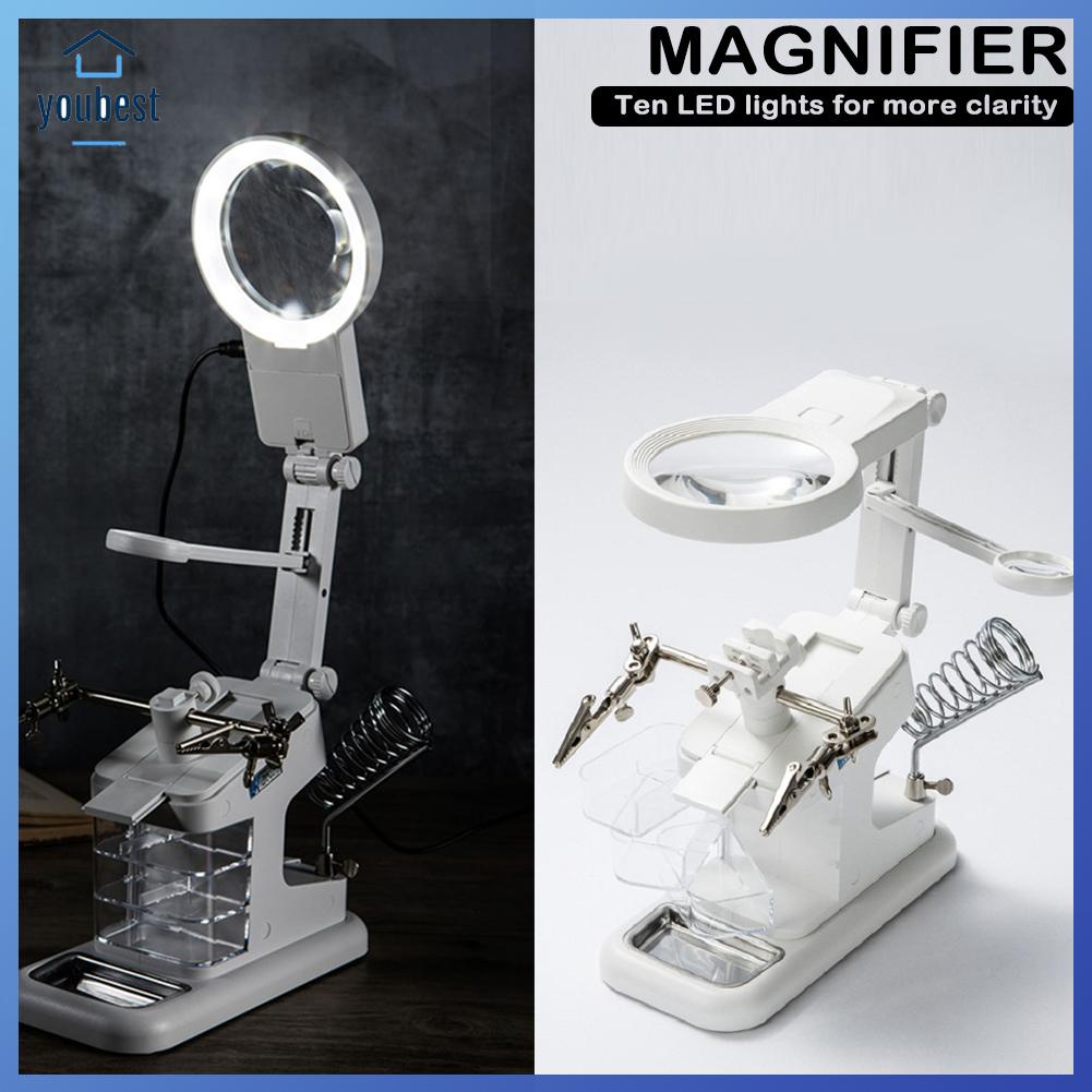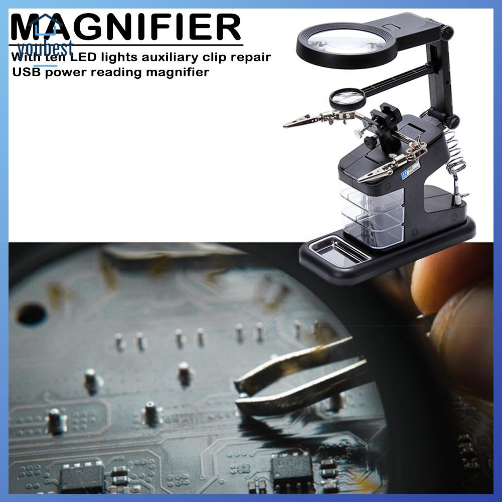 แว่นขยายเชื่อม พร้อมไฟ LED 10 ดวง คลิปแว่นขยายบัดกรี