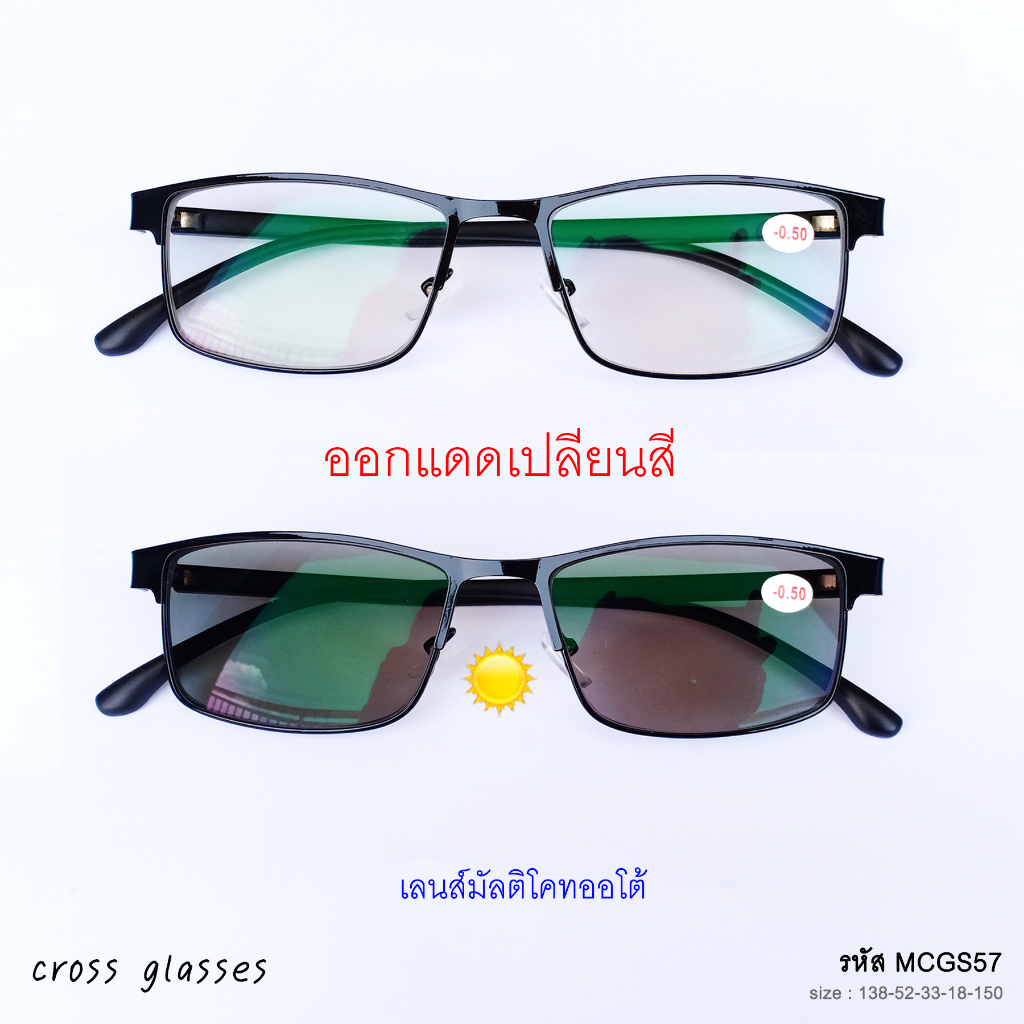 1. แว่นสายตาสั้น เลนส์มัลติโคทออโต้ = กรองแสงUV + ออกแดดเปลี่ยนสี