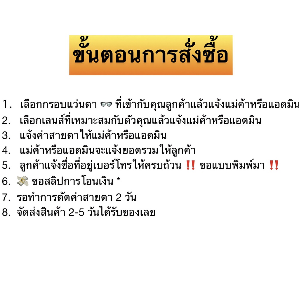 แว่นสายตาสั้น แว่นสายตายาว ตัดแว่นสายตาออไลน์ ตัดค่าสายตาตามใบค่าสายตา (กรอบพร้อมเลนส์สายตาสั้น-ยาว)
