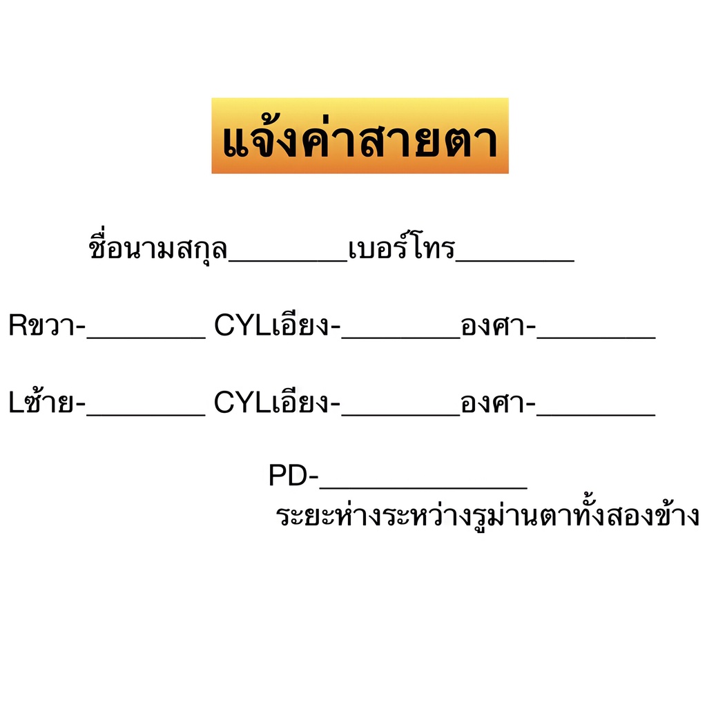 ตัดค่าสายตาตามใบค่าสายตา ** ไม่ใช้เลนส์สำเร็จรูป **