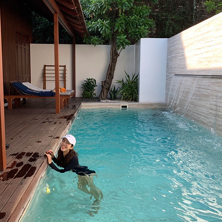 ชุดตัวนี้เป็นทรงเข้ารูป ใส่สบาย ผ้าสกูบ้า เนื้อผ้า SPANDEX + POLY สำหรับใส่ว่ายน้ำได้เป็นอย่างดี (ไม่ใช่ผ้าร่มเกรดถูก)