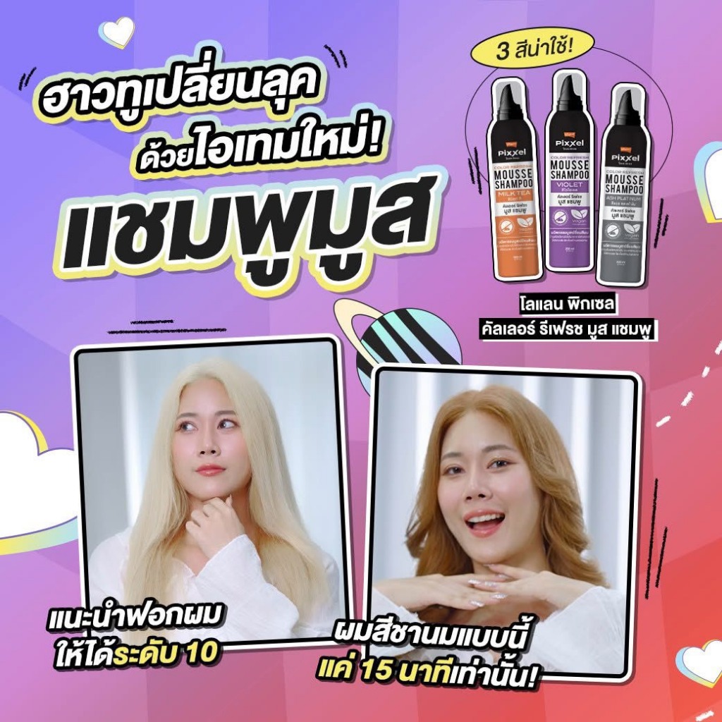 แชมพูเพิ่มประกายสีผมในรูปแบบมูส ฟองโฟมนุ่ม เกลี่ยง่าย กระจายตัวดี พร้อมมอบความอ่อนโยนต่อผมที่แห้งเสียผ่านการฟอก ลดการทำเคมีซ้ำๆ ไม่เสียเวลา หมวดหมู่ Hair Colour รีวิว ยังไม่มีบทวิจารณ์ มาเป็นคนแรกที่วิจารณ์ “โลแลน พิกเซลคัลเลอร์ รีเฟรช แฮร์ มูส สีมิลก์ที / ไวโอเลต 200 มล.”Cancel Replyอีเมลของคุณจะไม่แสดงให้คนอื่นเห็น ช่องข้อมูลจำเป็นถูกทำเครื่องหมาย *การให้คะแนนของคุณ * ให้คะแนน… ดีเยี่ยม ดี ปานกลาง ค่อนข้างแย่ แย่มาก Name *Email *บทวิจารณ์ของคุณ * บันทึกชื่อ, อีเมล และชื่อเว็บไซต์ของฉันบนเบราว์เซอร์นี้ สำหรับการแสดงความเห็นครั้งถัดไป ส่ง
