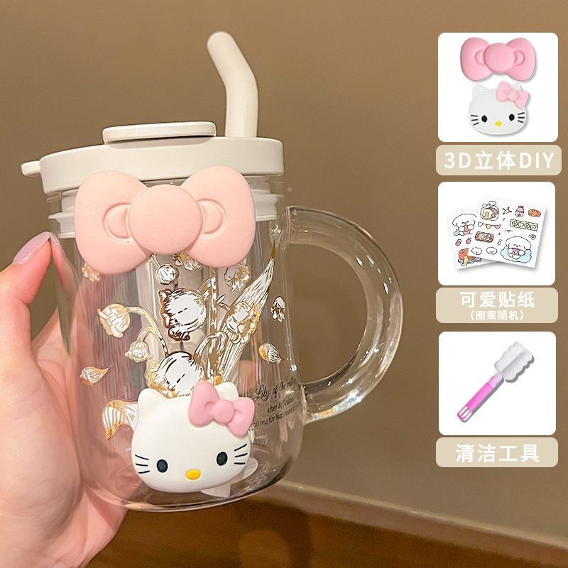 ความจุ: ถ้วยแก้วเดี่ยว, ถ้วย + แปรง + สติ๊กเกอร์ + สติกเกอร์สวัสดีคิตตี้สเตอริโอ 3D DIY