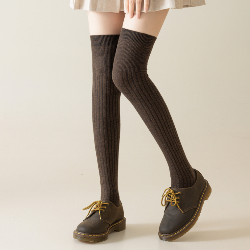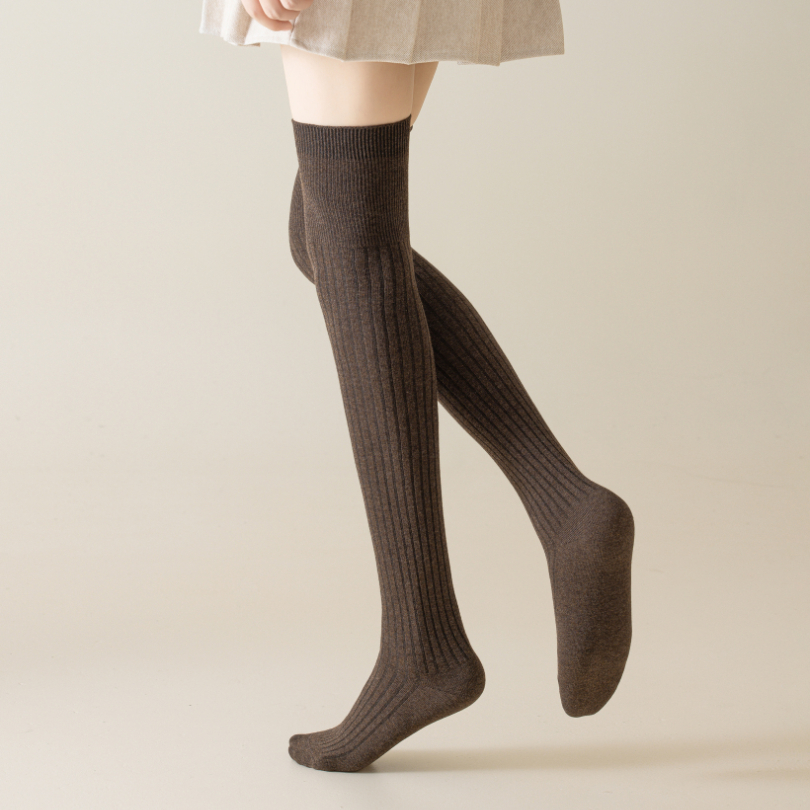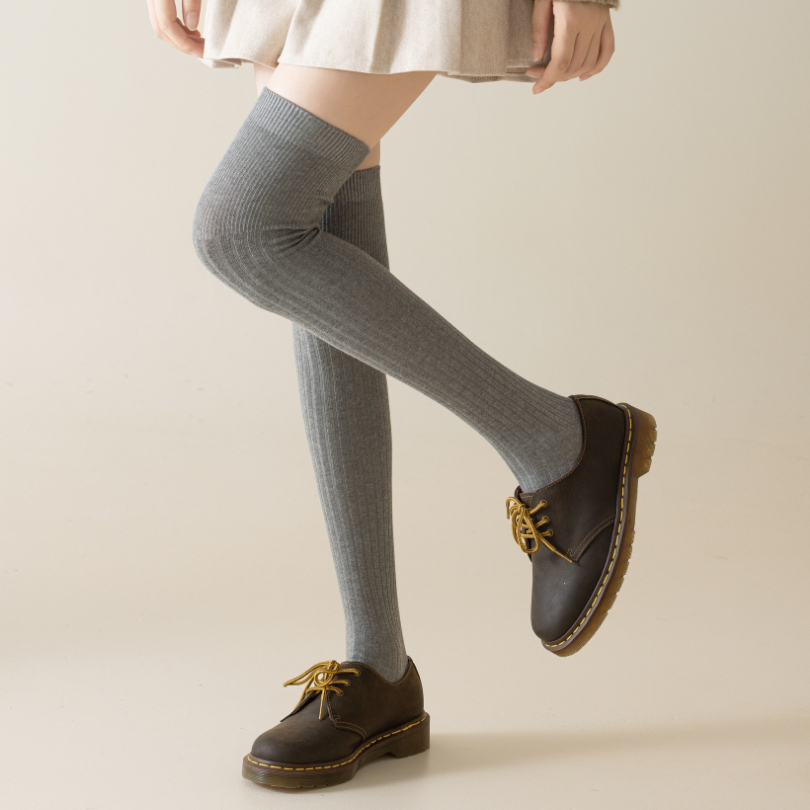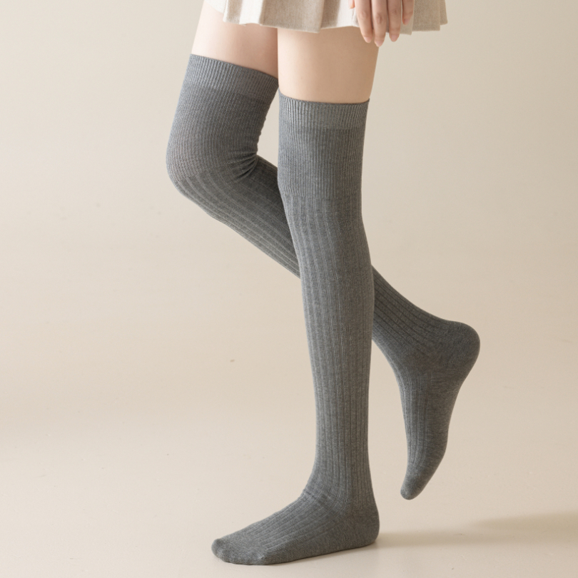 คุณสมบัติ : ถุงเท้าสีทึบ ข้อยาวคลุมเหนือหัวเข่า เนื้อนุ่ม คุณภาพดี