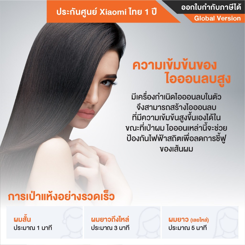 ✅ ชื่อผลิตภัณฑ์:Xiaomi ไดร์เป่าผมไอออนความเร็วสูง