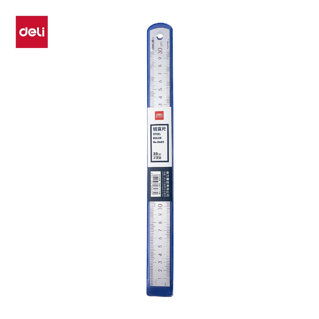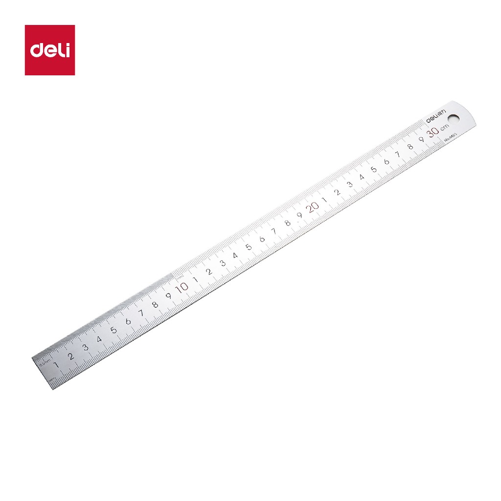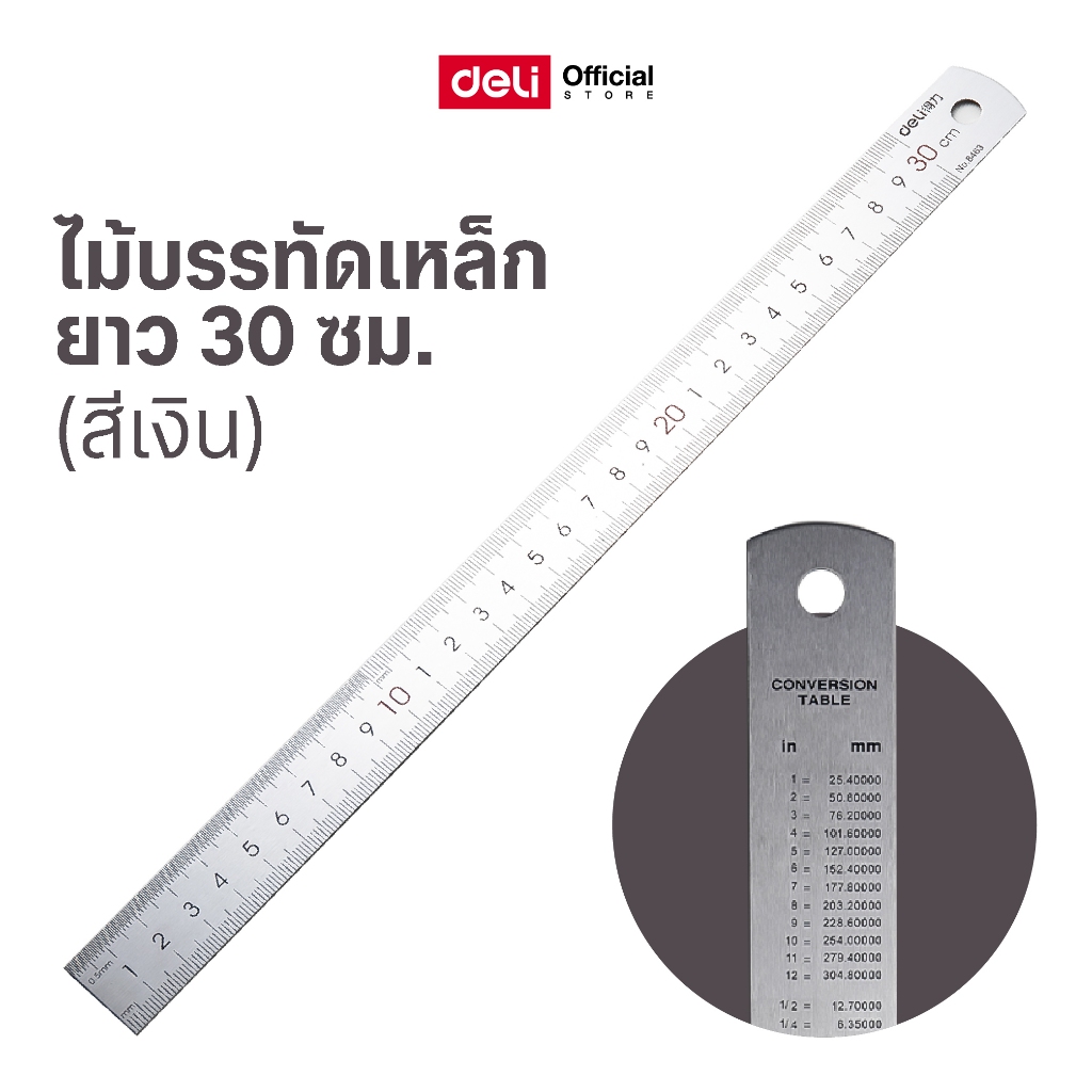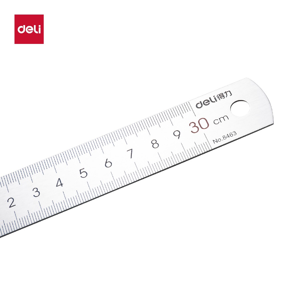 Deli 8463 ไม้บรรทัดเหล็ก ยาว 30 ซม. (สีเงิน) วัสดุจากเหล็ก ทนทานคงทน ใช้งานได้ยืดยาว