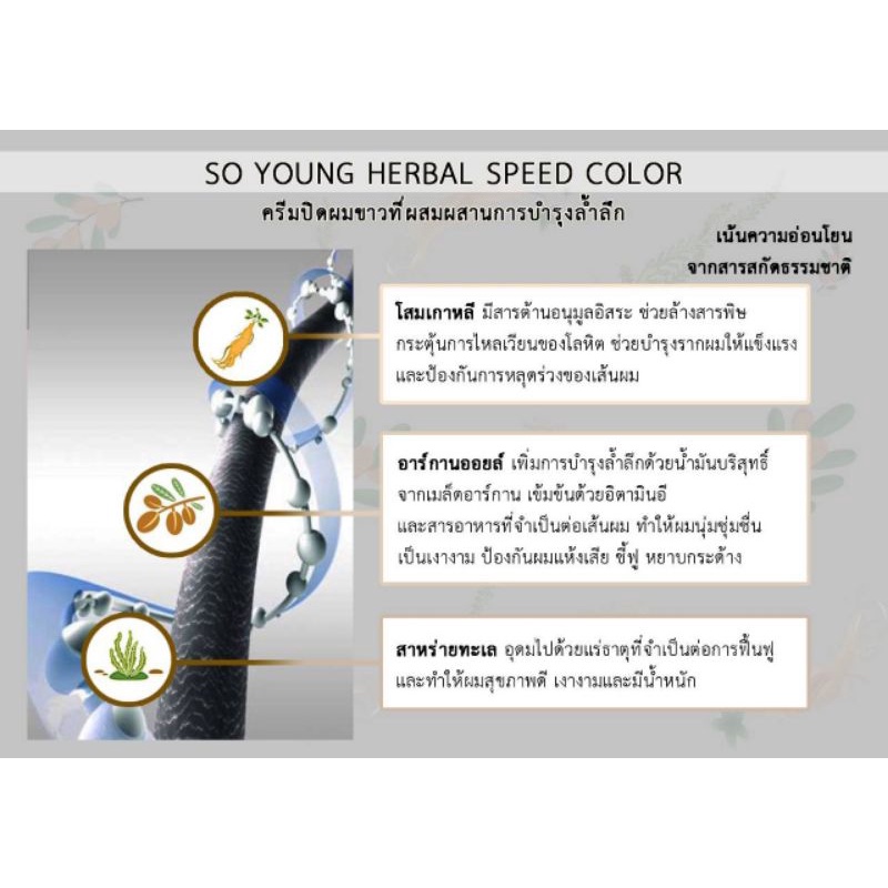 ครีมปิดผมขาว So Young จากประเทศเกาหลี ปิดด่วนใน 3 นาทีเท่านั้น รวดเร็ว ไม่ทิ้งคราบเลอะเทอะ และกลิ่นไม่ฉุน เน้นการบำรุงให้เส้นผมนุ่มสลวยยิ่งขึ้น ~