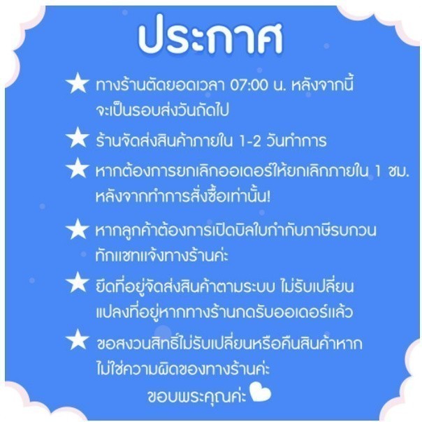 จัดส่งฟรีทั่วประเทศ ออกใบกำกับภาษีแจ้งมาใสช่องแชทได้เลยจ้า