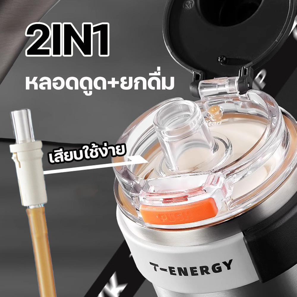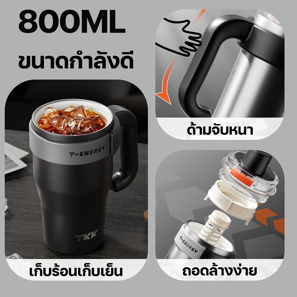 เก็บความเย็นและความร้อนได้ ยาวนานกว่า 8 ชั่วโมง พร้อม หลอดดูด และ ด้ามจับ ที่สะดวก