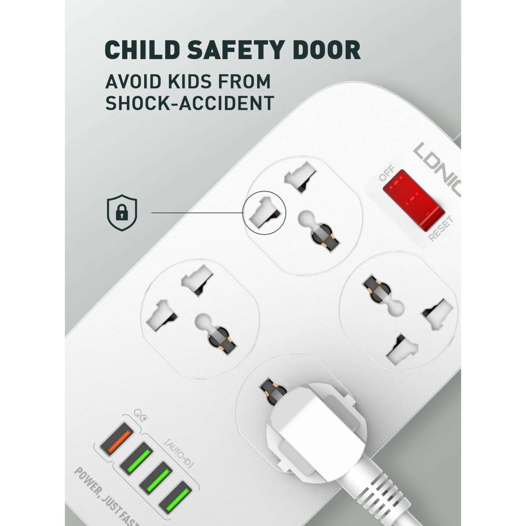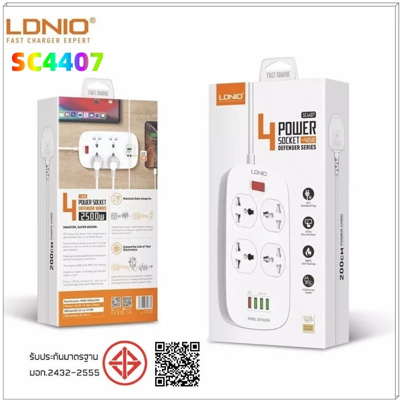 ⚡️ของแท้⚡️LDNIO SC4407 ปลั๊กพ่วง DEFENDER SERIES 4 POWER SOCKET+ 4 USB 2500W มี FAST CHARGE