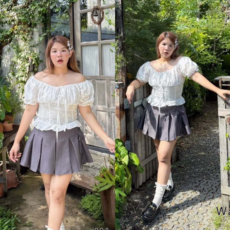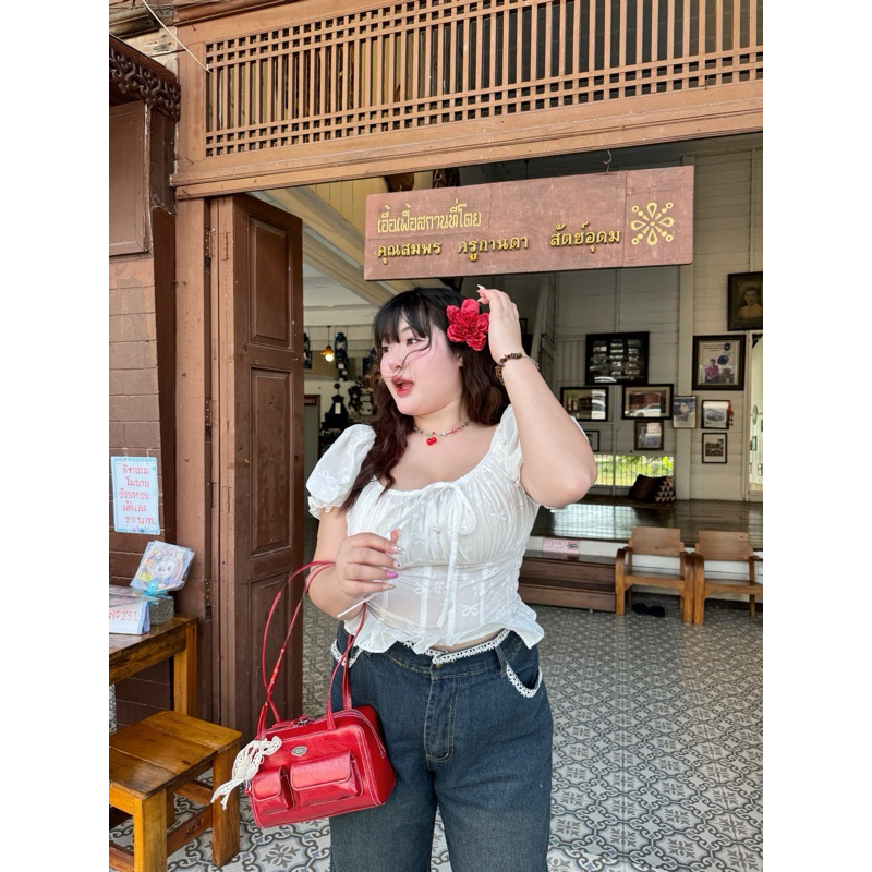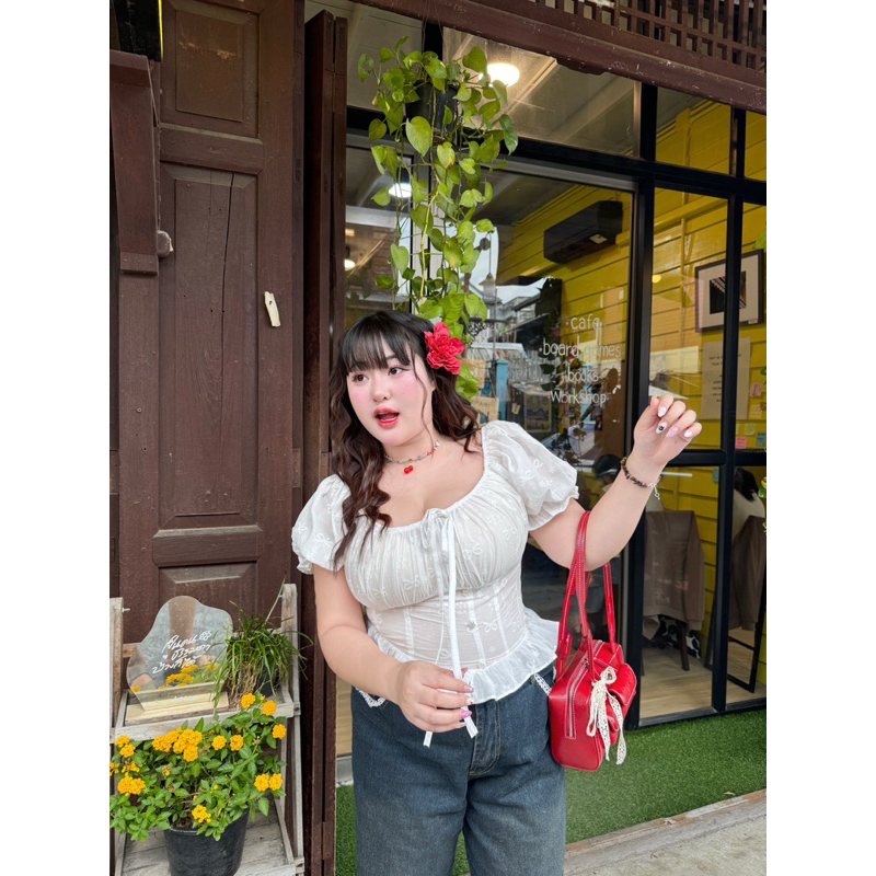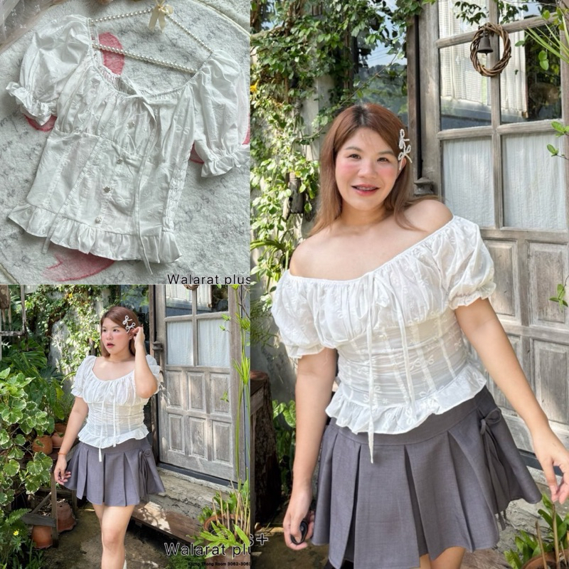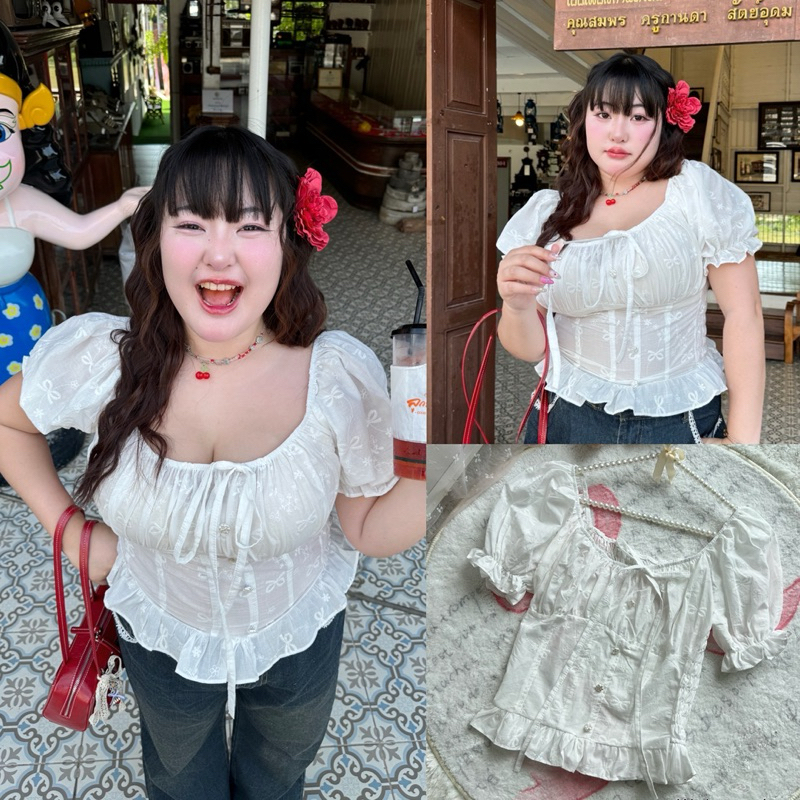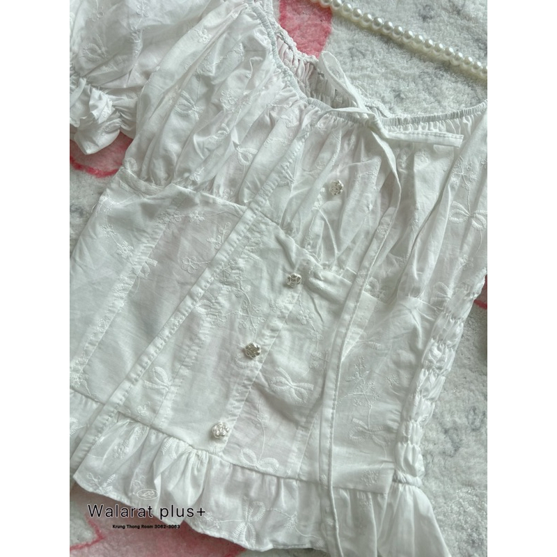 เสื้อแขนตุ๊กตา ใส่ได้ 2แบบ จะเปิดไหล่ก็ได้หรือจะปิดไหล่ก็ได้ ผ้าลายโบว์แต่งกระดุมดอกไม้ ตรงอกผูกโบว์ได้ หวานละมุม มาก ผ้านำเข้าจากต่างประเทศ ใส่สบายเนื้อดีเหมาะกับทุกลุคคุ้มค่ากับราคาแน่นอน