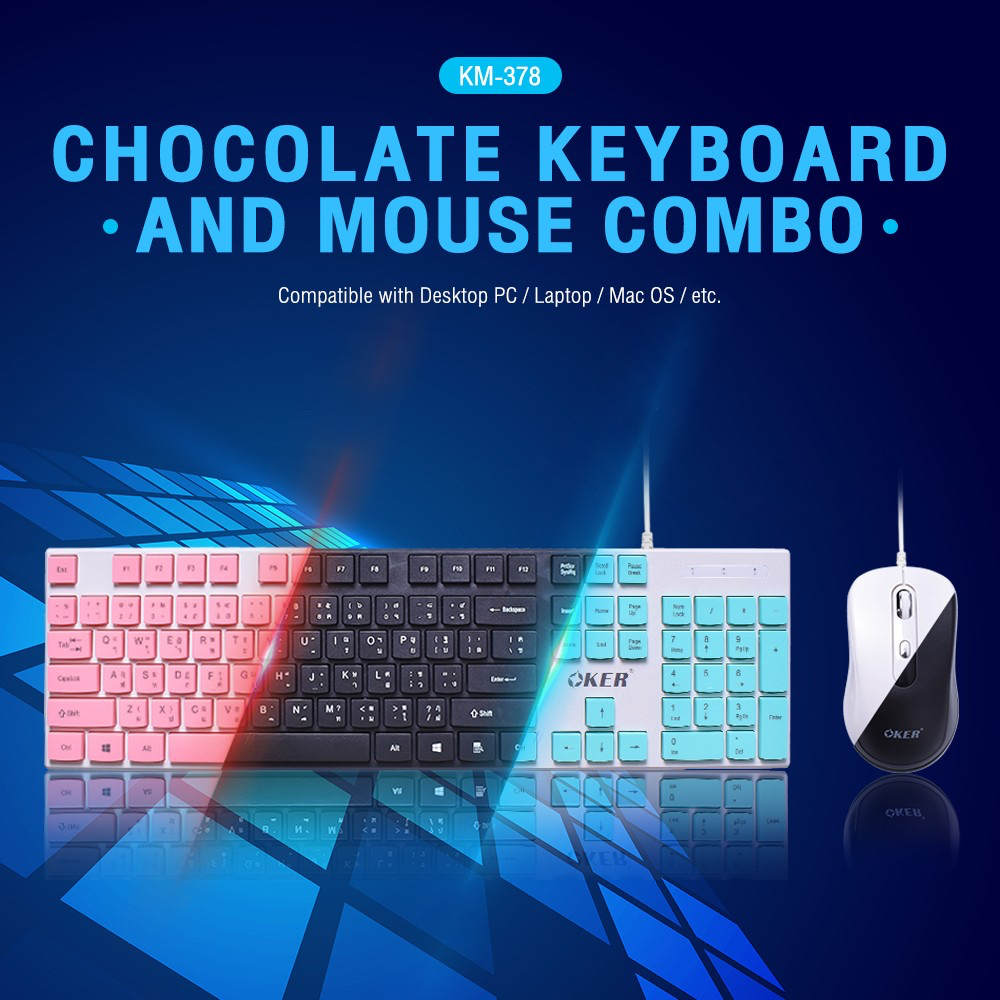 ✅แท้100% ชุดแป้นพิมพ์และเมาส์ OKER KM-378 CHOCOLATE KEYBOARD+Mouse คีย์บอร์ด+เม้าส์ ปุ่มกดง่าย #CC 378