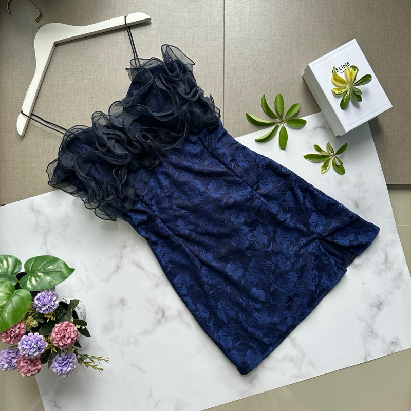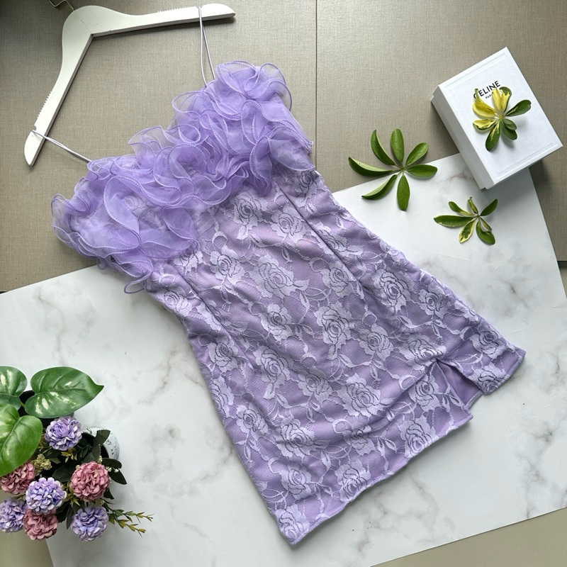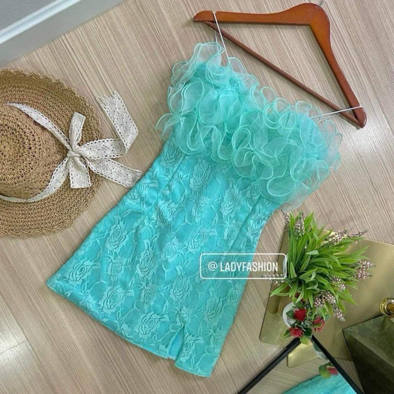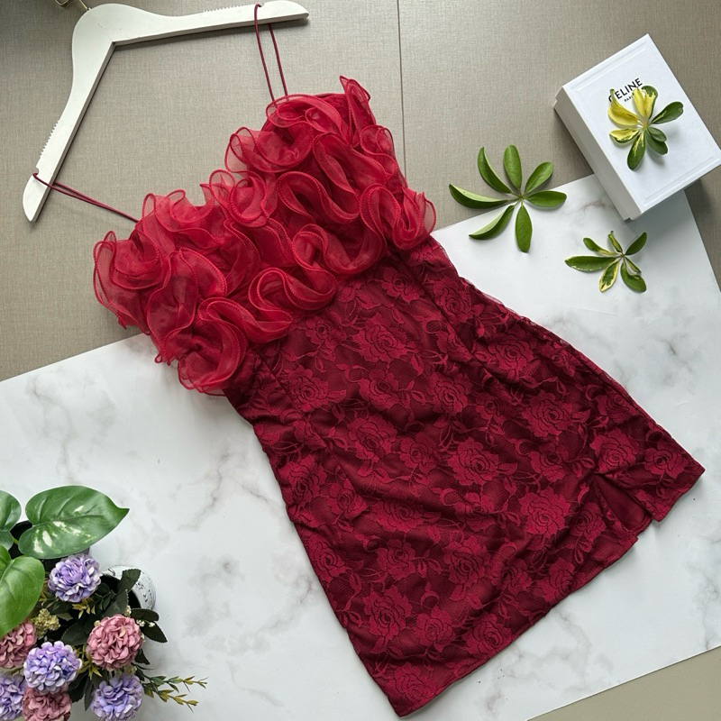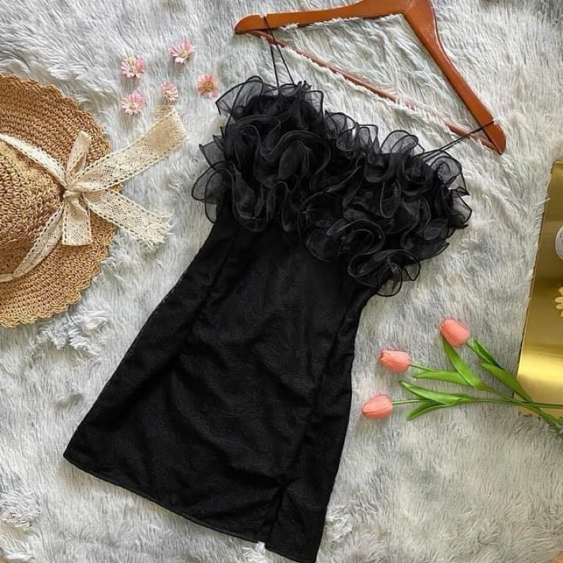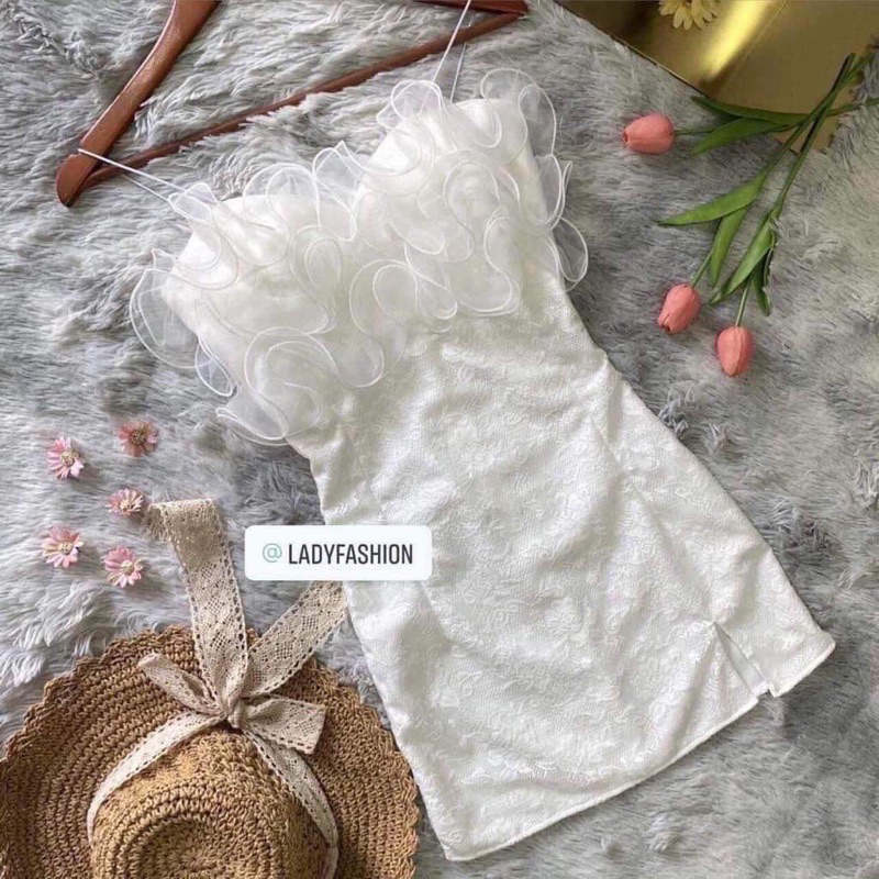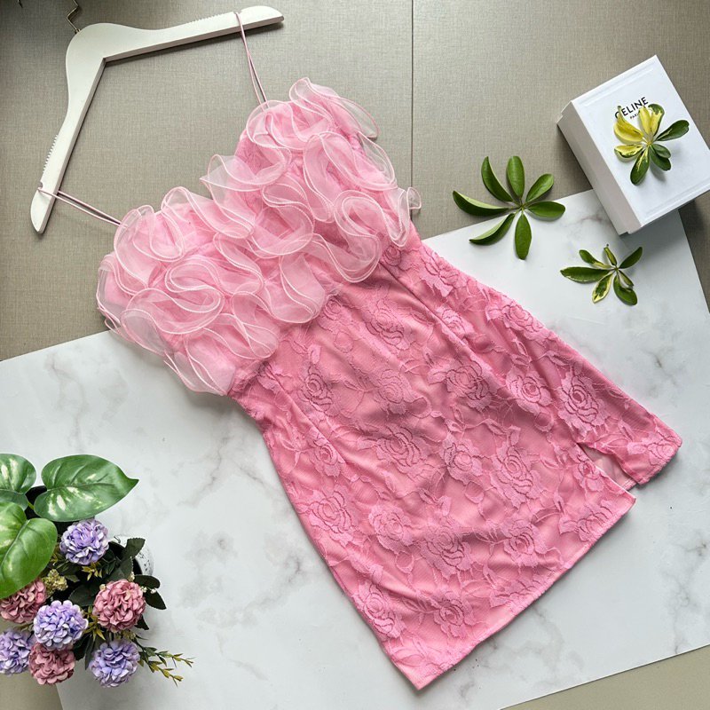 ✨ลด20% ใส่โค้ด WGWREJ✨ เดรสสายเดี่ยว แต่งอกฟู่ ดีเทลลายดอกไม้ สวยเข้ารูปใส่ออกงานได้ค่ะ