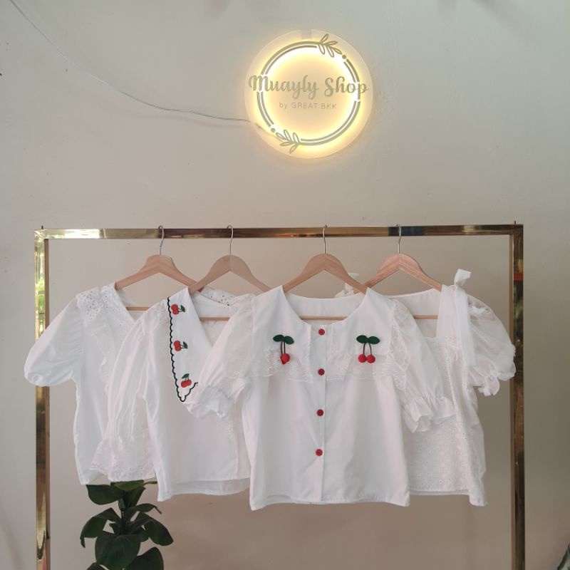 เสื้อขาวผ้าฝ้ายลินิน แบบน่ารักๆ