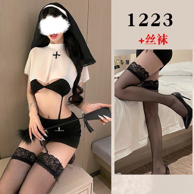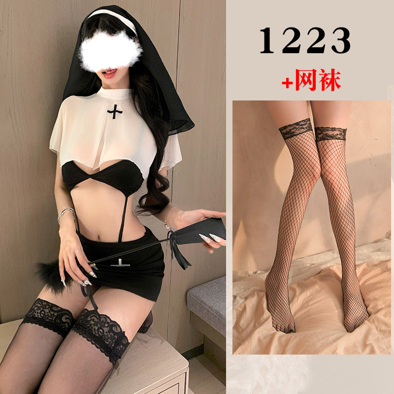 สี: เสื้อผ้าแม่ชี 1223, ถุงเท้าตาข่าย 1223 +, ถุงน่อง 1223 + ถุงน่องเปิด