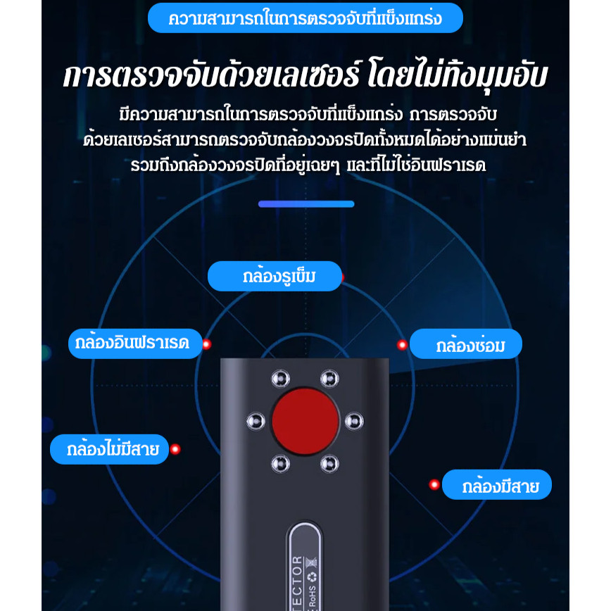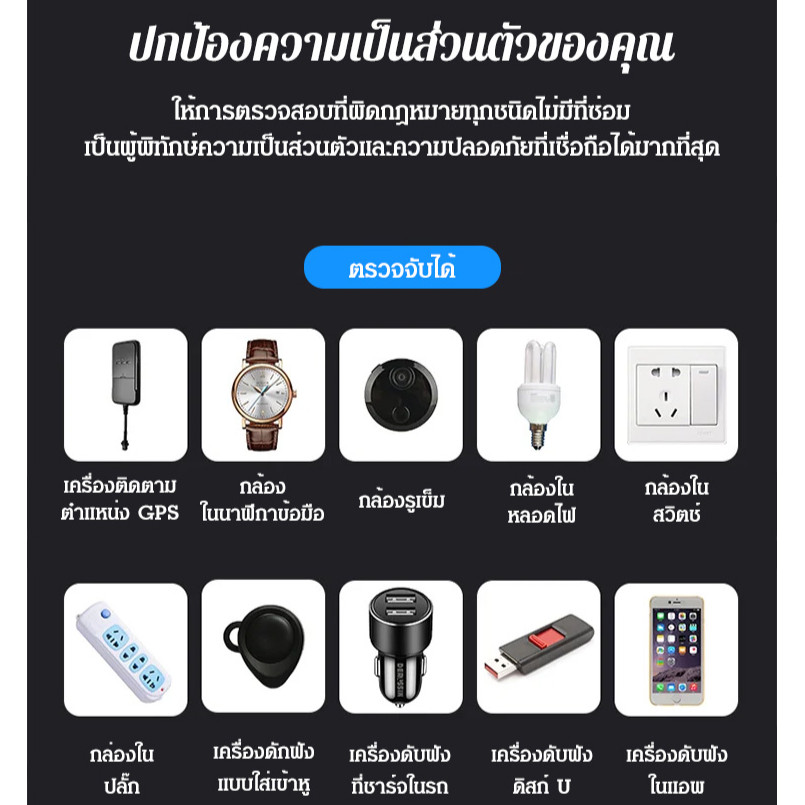 5. ปกป้องธุรกิจของคุณจากการสอดแนมและการโจรกรรมด้วยเครื่องตรวจจับกล้อง เทคโนโลยีป้องกันการเฝ้าระวังขั้นสูงของเราเหมาะอย่างยิ่งสำหรับการตรวจจับกล้องไมโครโฟนที่ซ่อนอยู่และตัวติดตาม GPS