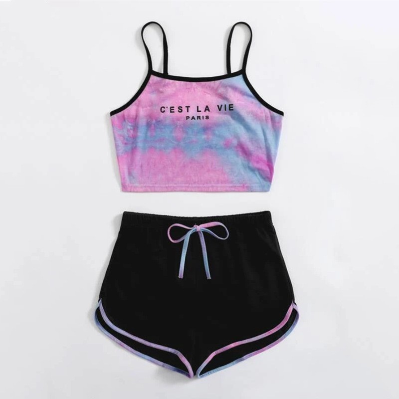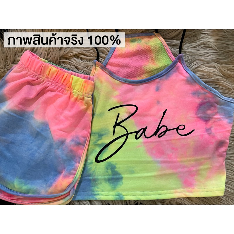 ชุดเสื้อมัดยอมสีพลาสเทล ครอปท้อป สายเดียว ขาสั้น ตอนรับซัมเมอ สไตล์สายฝอ