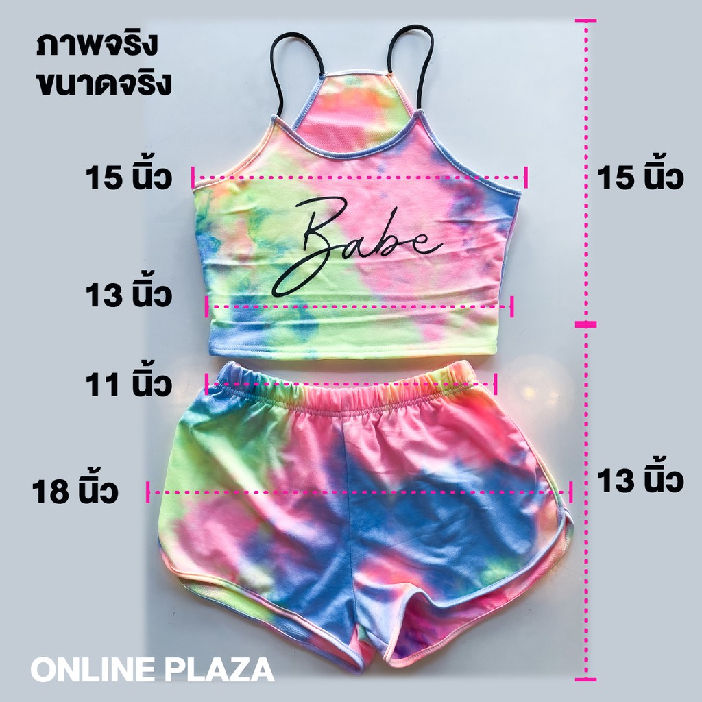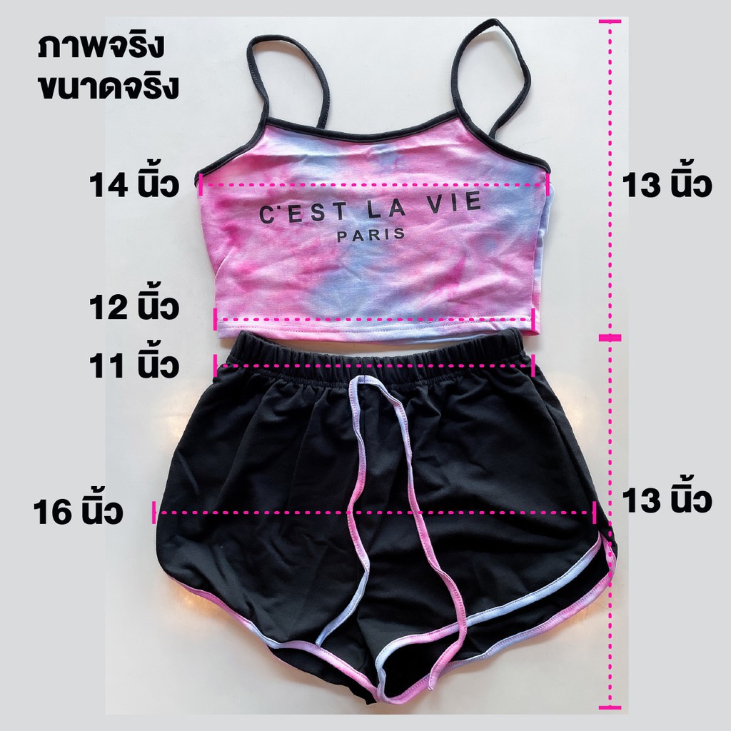 S : ลำตัว 32, ความยาวเสื้อ 15, เอว 25-44 ,สะโพก 41 , ความยาวกางเกง 13 ,ขา 26 นิ้ว