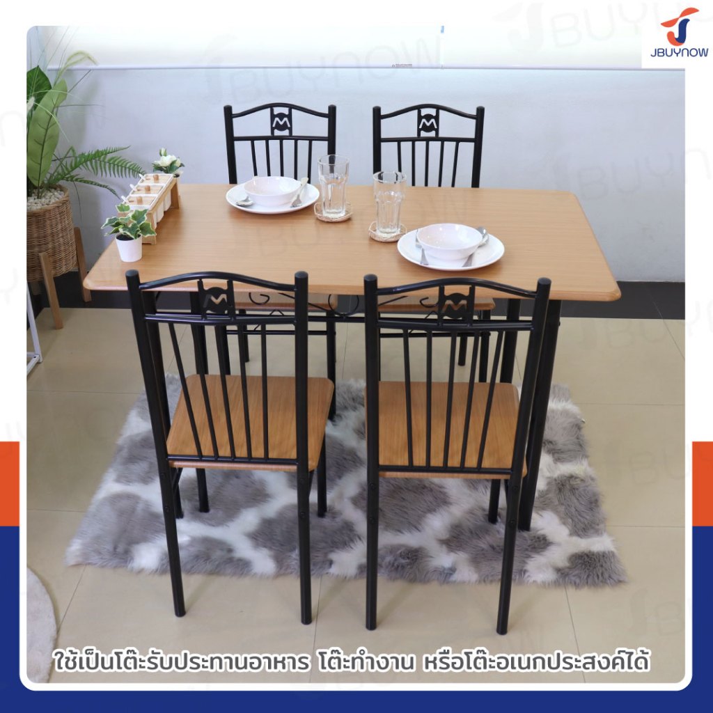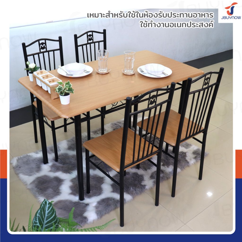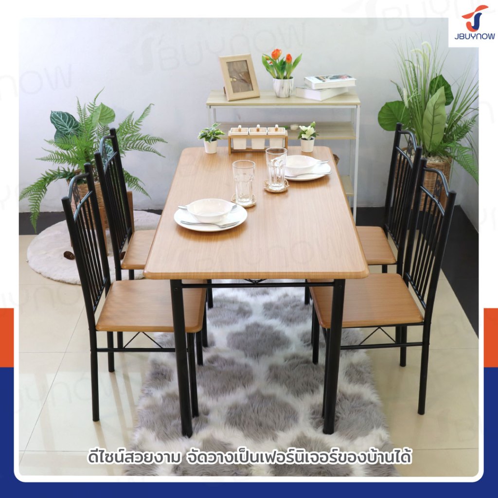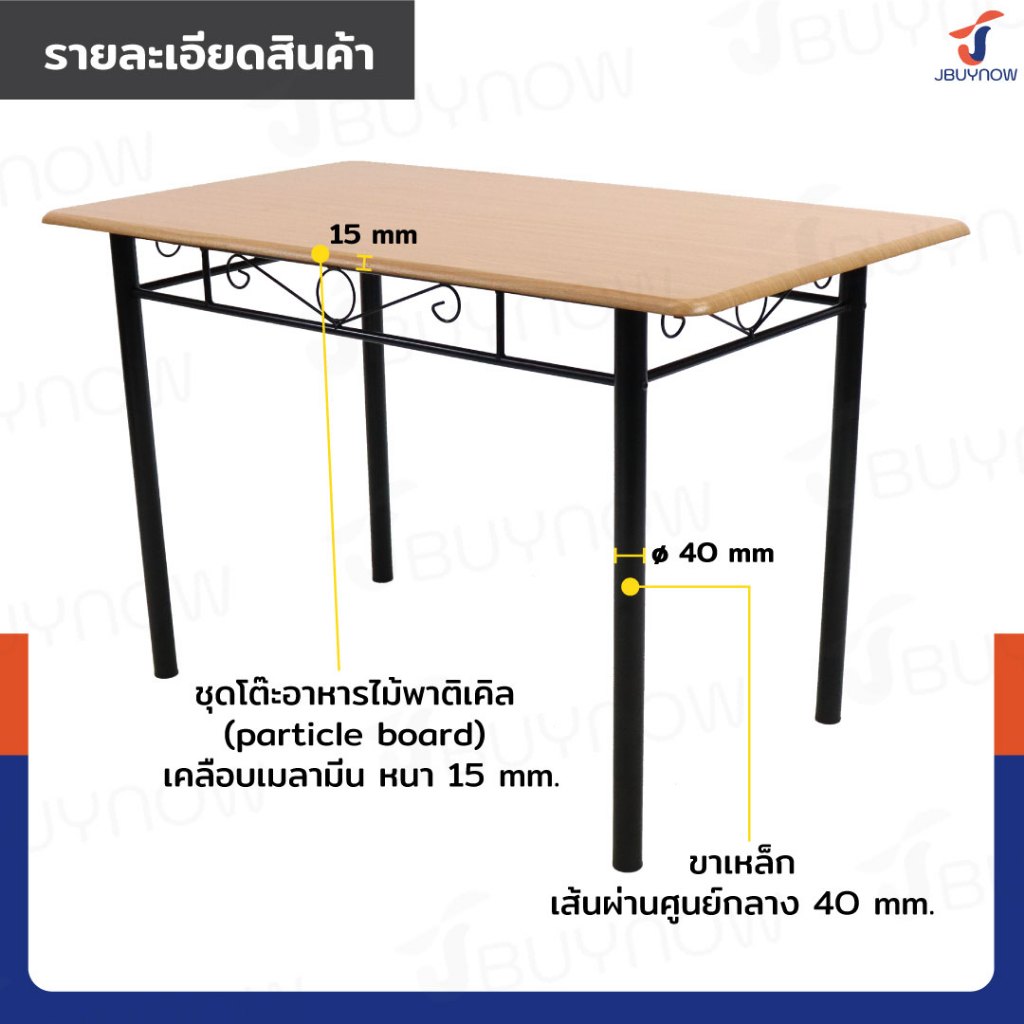 – ชุดโต๊ะอาหารไม้พาติเคิล (particle board) เคลือบเมลามีน ป้องกันการหลุดลอก ขีดข่วน และน้ำซึม