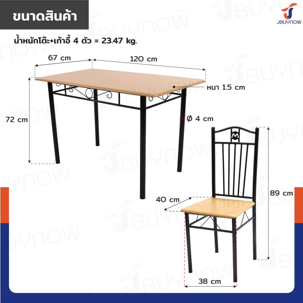 – โต๊ะรับน้ำหนักได้ 50 กก. เก้าอี้รับน้ำหนักได้ 80 กก. ต่อที่นั่ง