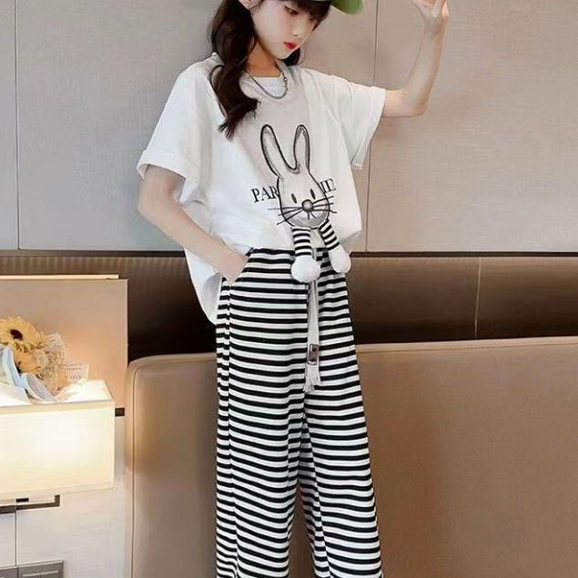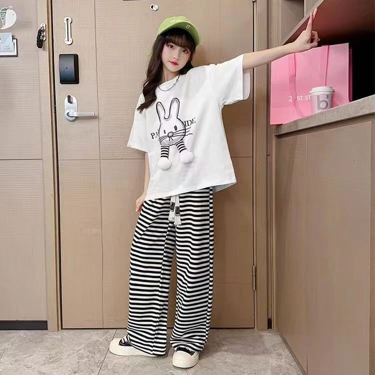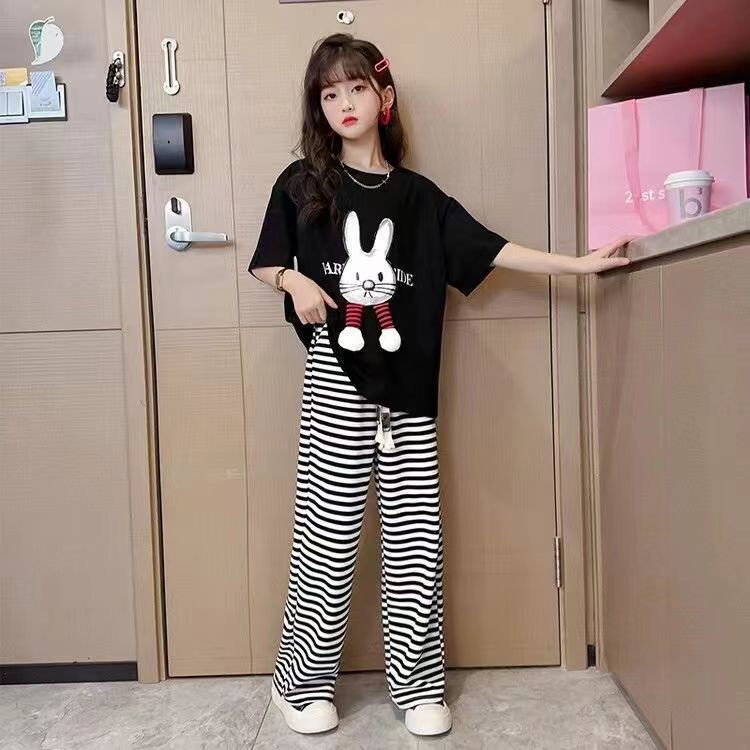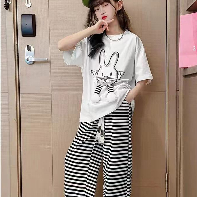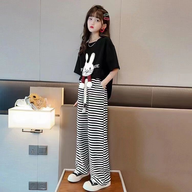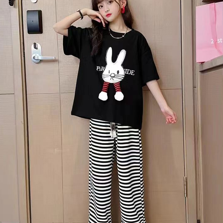 【สปอต】 3-14 ปี ชุดสูทสำหรับเด็กผู้หญิงฤดูร้อนแขนสั้นชุดสูทสำหรับเด็กผู้หญิงแฟชั่นสบาย ๆ ลายเด็กใหญ่