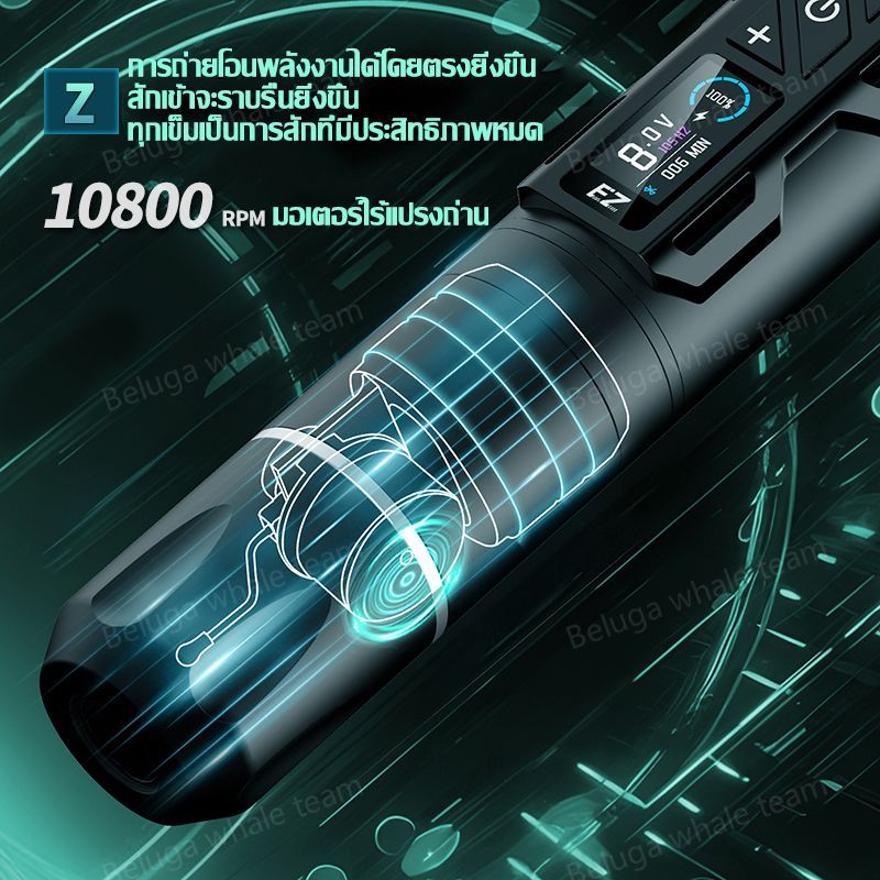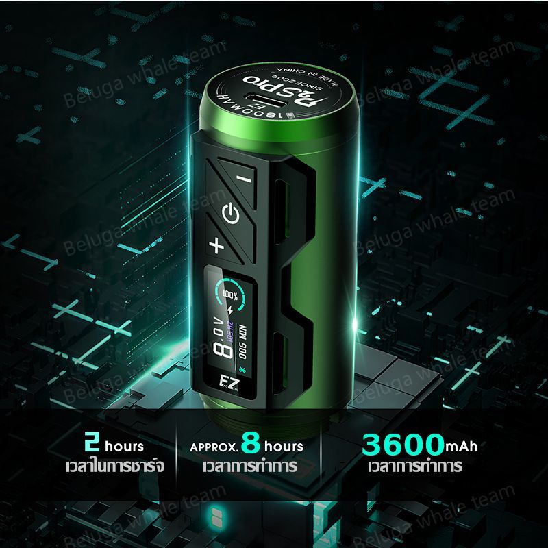 2. แบตเตอรี่ลิเธียมในตัว: เครื่องสักไร้สายทํางานบนแบตเตอรี่ลิเธียมไอออน 3600mAh และสามารถทํางานได้อย่างต่อเนื่องนานถึง 7-8 ชั่วโมง