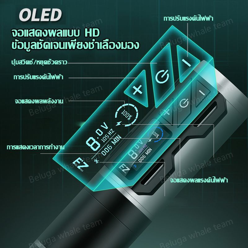 1. หน้าจอ LED: เครื่องสักไร้สายมีจอแสดงผล LEDแสดงแรงดันไฟฟ้าที่ใช้งานได้ 0.5V และแรงดันไฟฟ้าที่ปรับได้ 5-12V