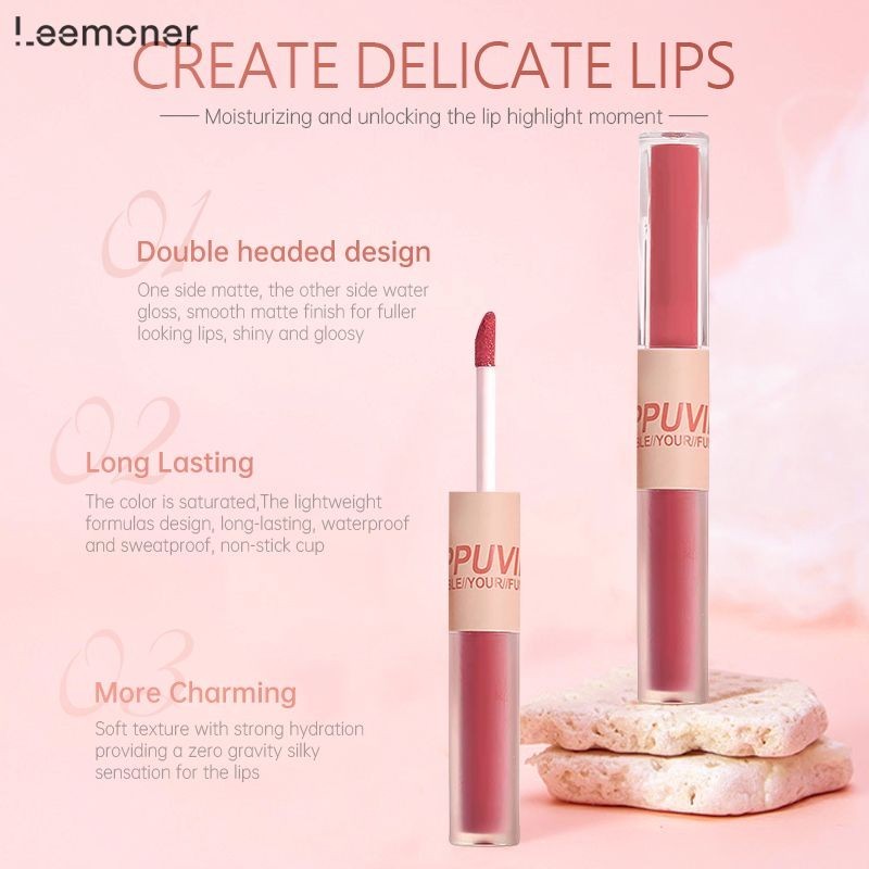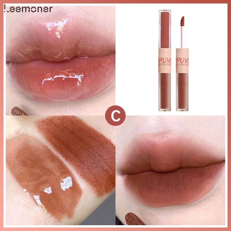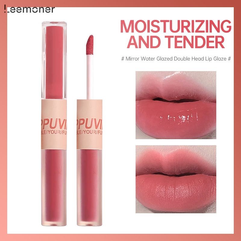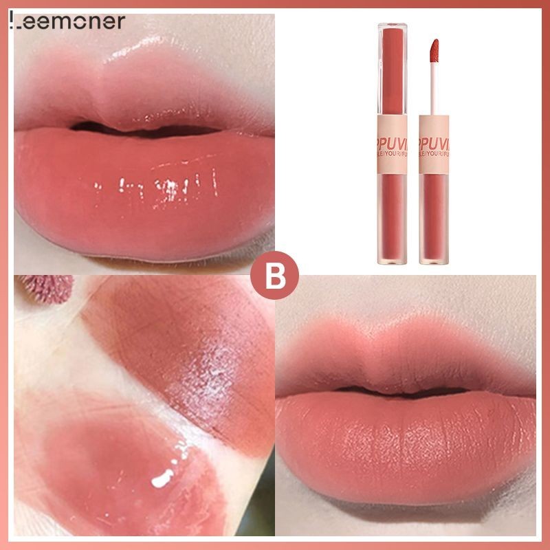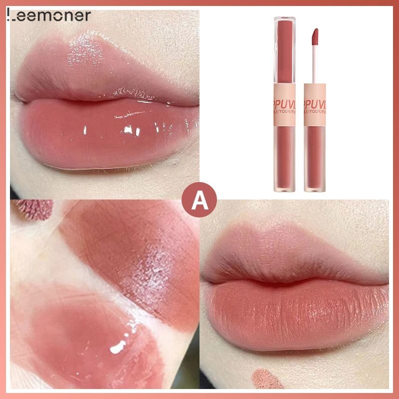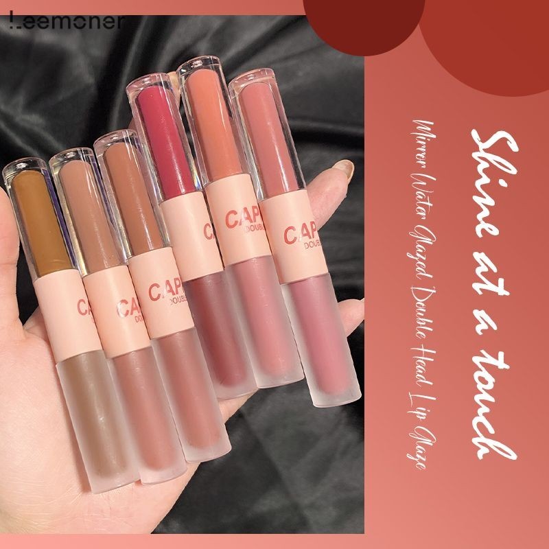 ยินดีต้อนรับสู่ร้านเสริมสวย [Leemoner] 2 ใน 1 สนุกคู่หัวริมฝีปากเคลือบกระจกขัดผิวน้ำลิปสติก