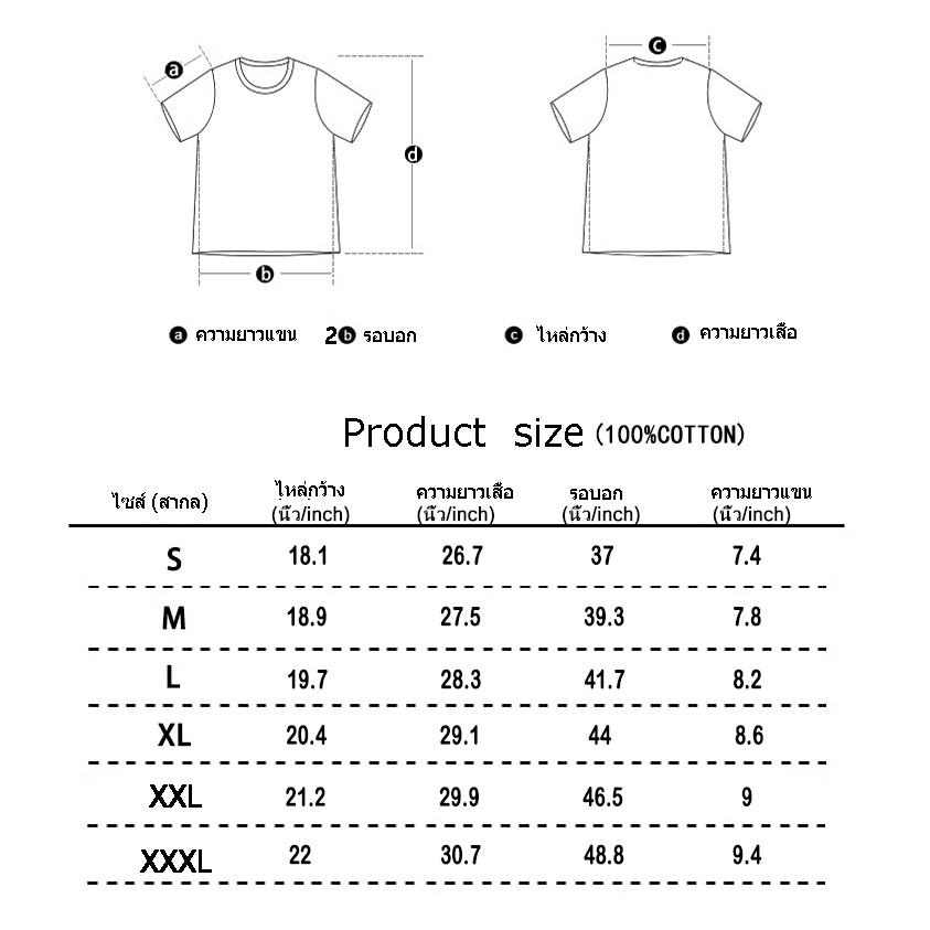 XL: รอบอก 112cm ยาว 74cm ไหล่กว้าง 52cm ความยาวแขน 22cm