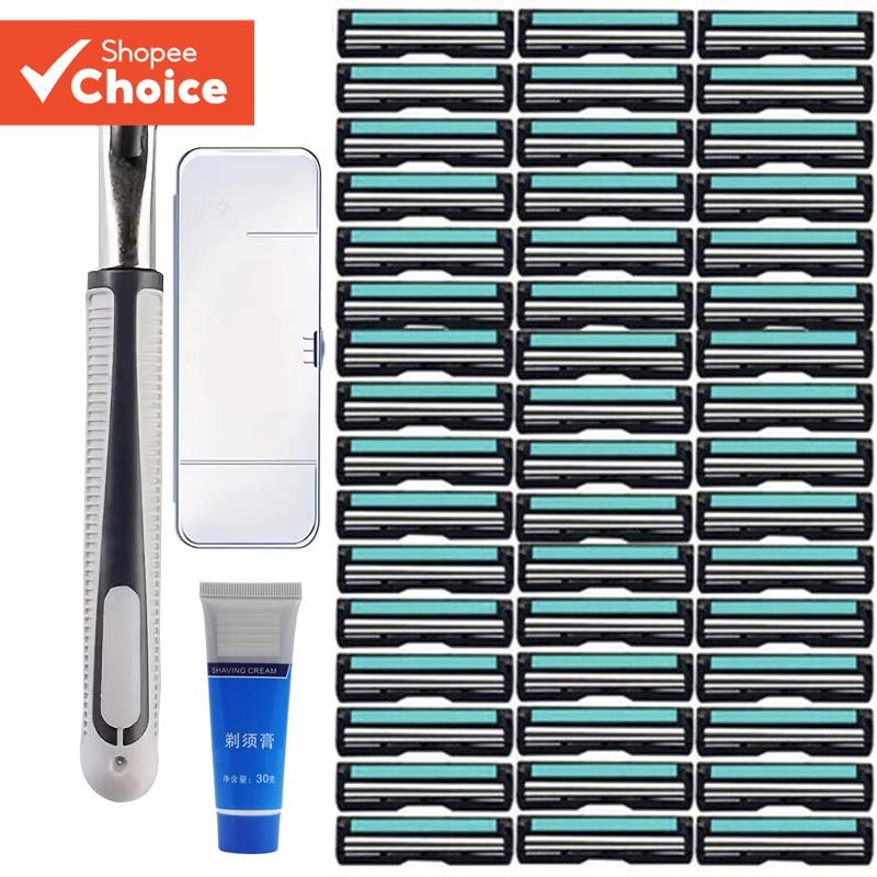 ด้ามจับ 1 อัน + 48 ใบมีด + ครีมโกนหนวด + กล่องการออกแบบใบมีดแบบหมุนช่วยเพิ่มความยืดหยุ่นในการโกนและปรับให้เข้ากับรูปหน้าและเคราประเภทต่างๆได้ดีขึ้น
