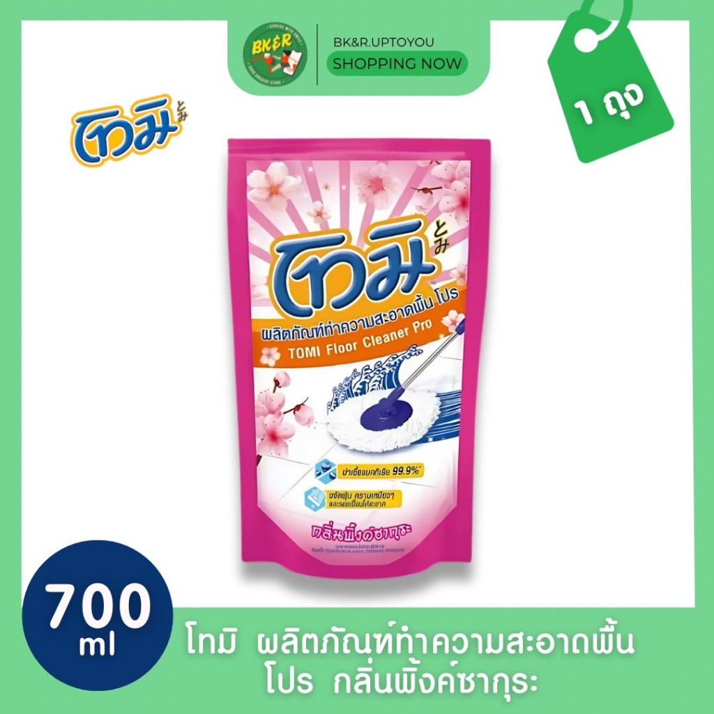 โทมิ น้ำยาทำความสะอาดพื้น สูตรทำความสะอาดพื้น กลิ่นสปริงซากุระ (สีชมพู) 700 มล.