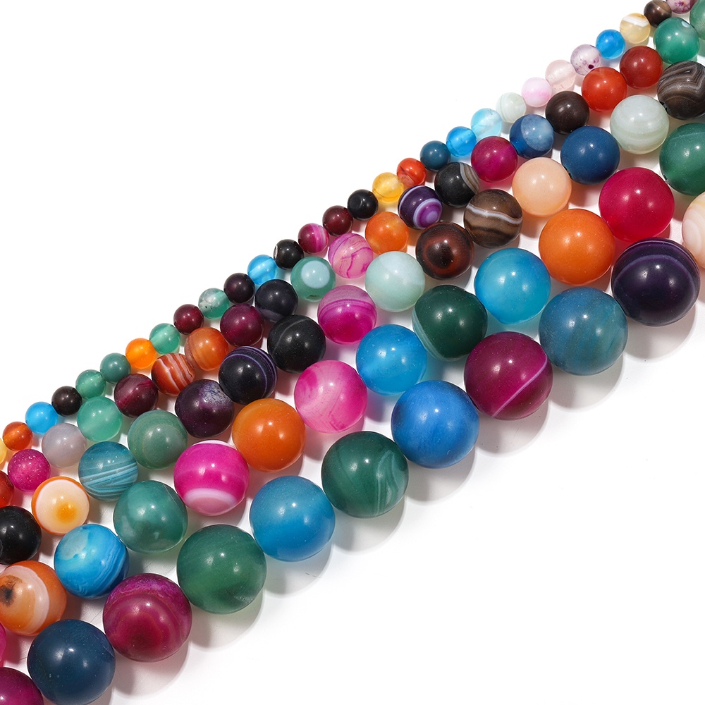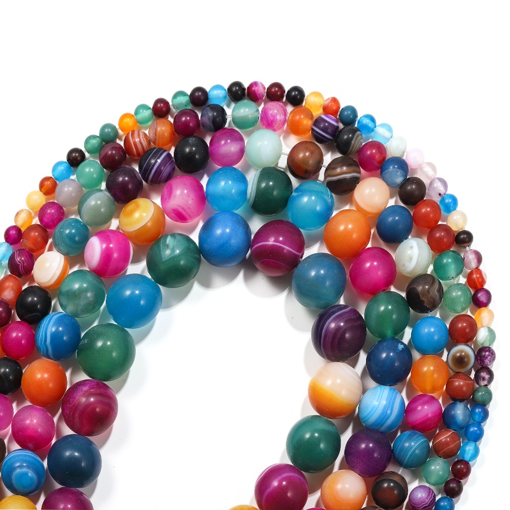1 strand ลูกปัดหินอาเกตสีสันสดใสธรรมชาติ