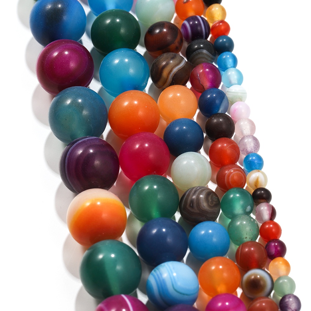 1 strand Matte ลูกปัดหินอาเกตสีสันสดใสธรรมชาติ