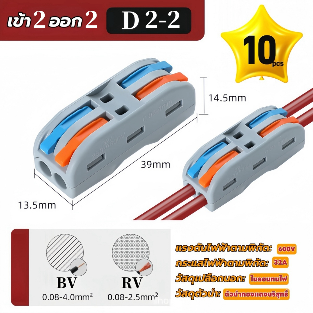 (10pcs)ข้อต่อสายไฟ เต๋าต่อสาย สินค้าตัวเลือก ขายต่อ 10 ตัว Wire Connectors Terminals 1-1/2-2/2-4/2-6