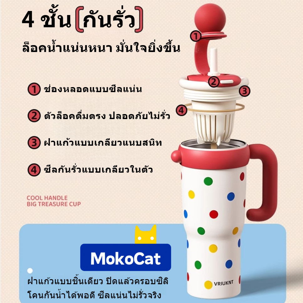 จุดเด่น: จุได้มาก ใช้ดื่มได้ทั้งวัน พร้อมเคลือบเซรามิกด้านใน มีช่องใส่ชาแยกได้ ทำให้แยกชาและน้ำได้สะดวก ดื่มได้ทั้งจากหลอดหรือปากฝา ตัวกระบอกออกแบบให้ฐานแคบพิเศษ ใส่ช่องวางแก้วในรถได้ง่าย และสามารถถอดทุกส่วนออกมาทำความสะอาดได้สะดวก