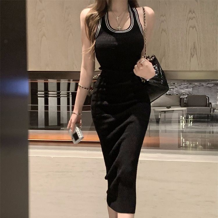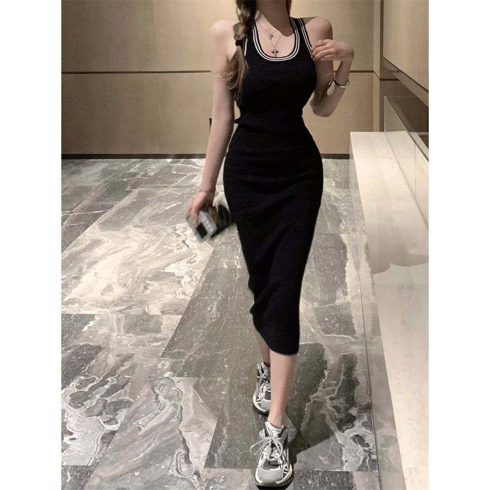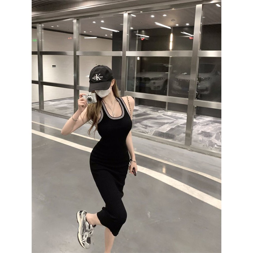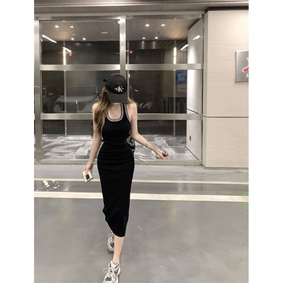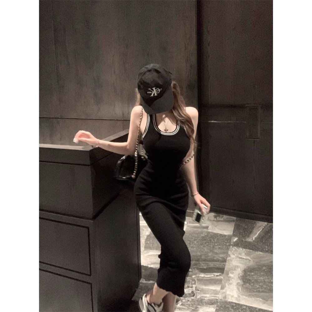 เซ็กซี่ร้อนสาวเสื้อกล้ามแขนกุดผู้หญิงฤดูใบไม้ผลิ 2024 ใหม่ทุกคู่สลิมยาวกลางสะโพกกระโปรง